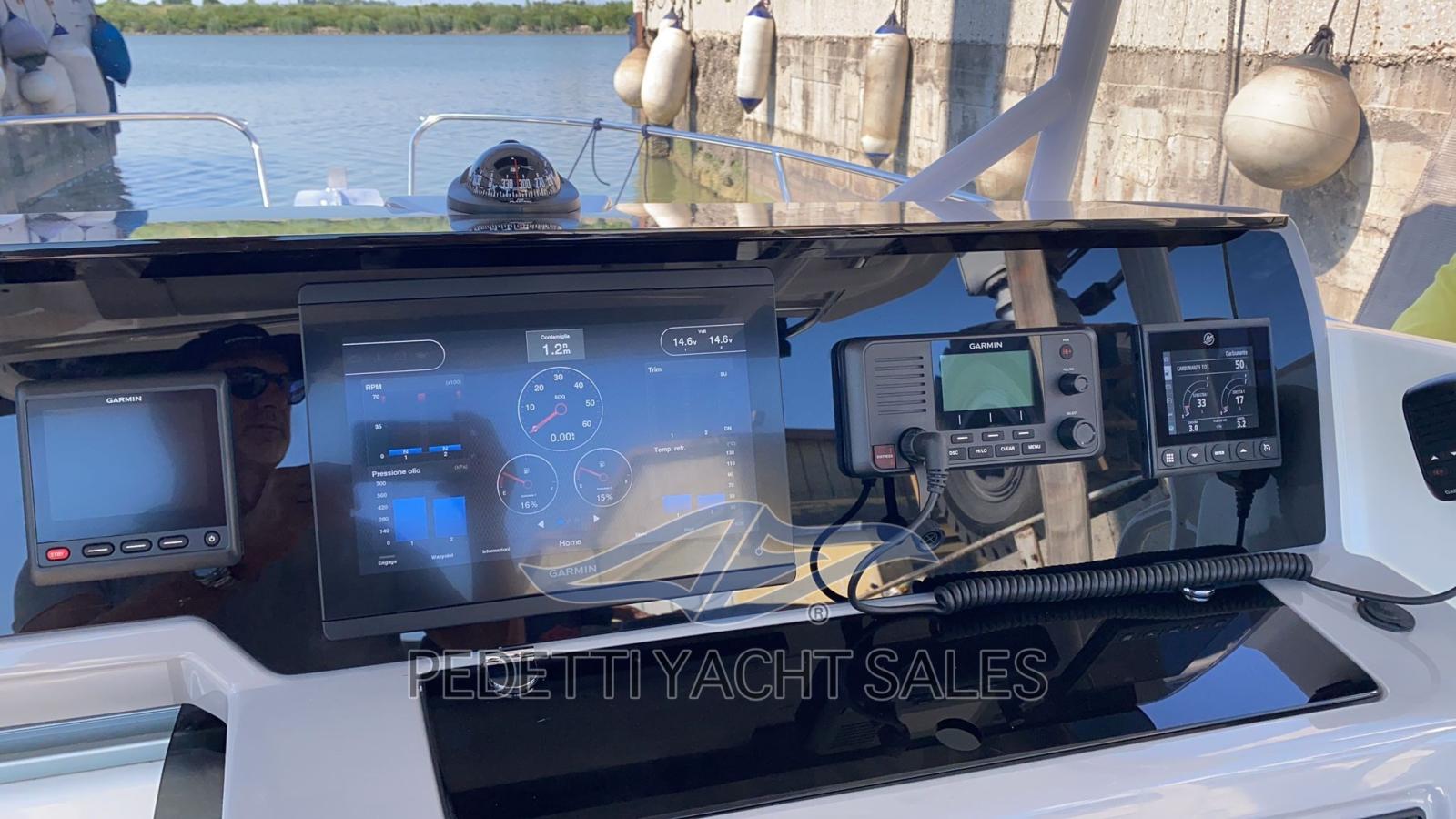 Alarme moteur, Alarme de pompe de cale, Trim hydraulique, Phare de poursuite, Flaps électriques, Indicateurs de flaps, Éclairage de courtoisie, Pompe de cale automatique, Pompe de cale manuelle, Porte latérale, Prise de quai, Guindeau électrique, Echelle de bain, table de cockpit, Corne, T-Top.