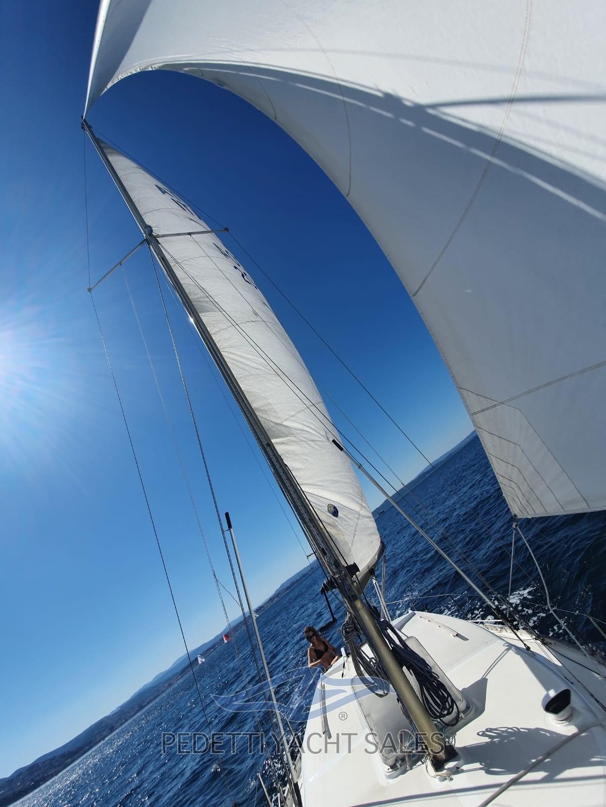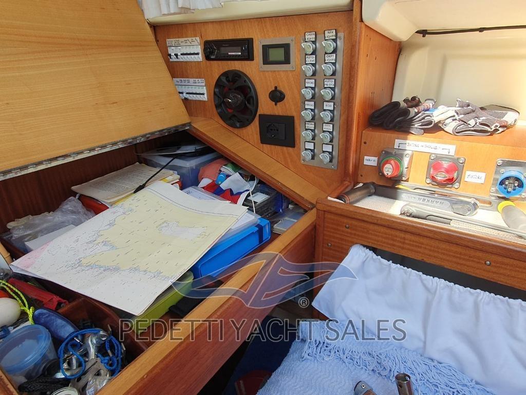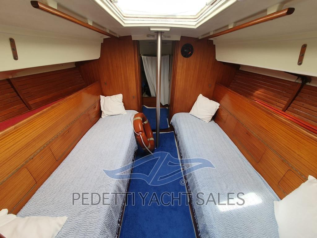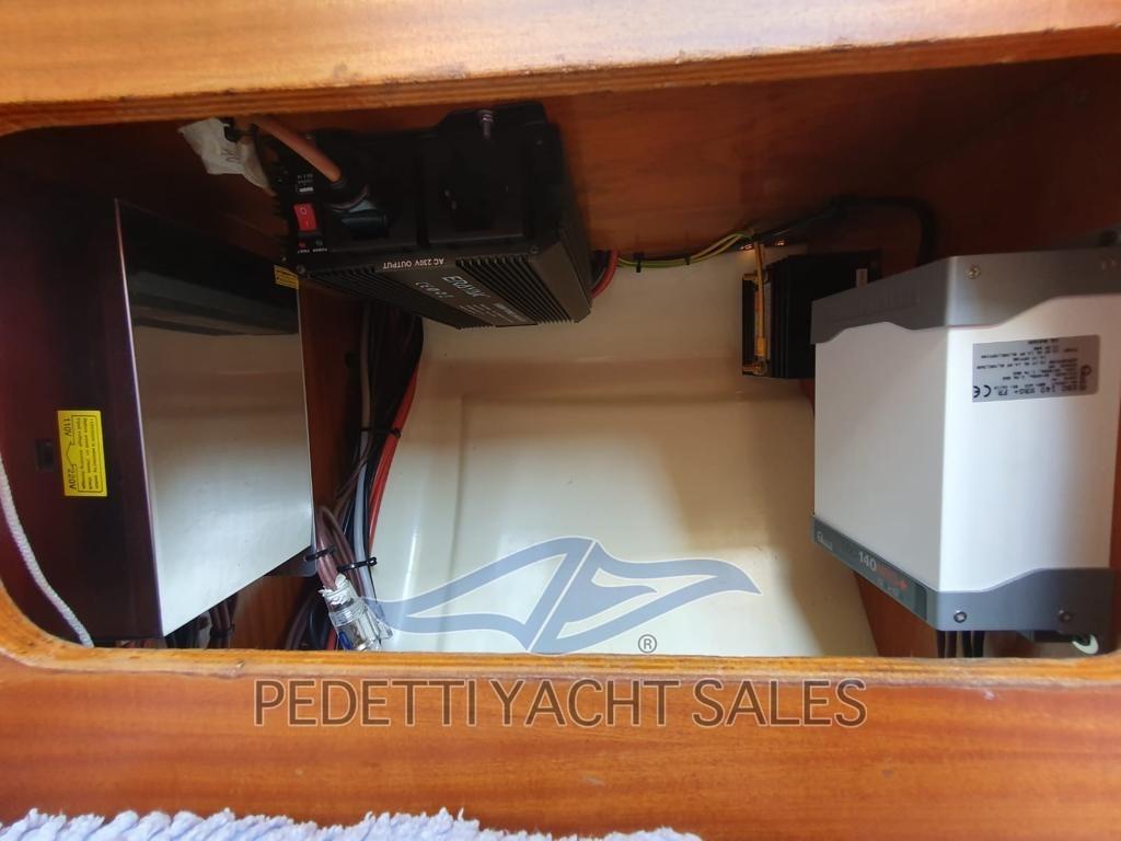 L’Arpège, entièrement rénové en 2019, est un sloop armé à la tête du mât. Le plan de voile comprend une grenouille d’environ 20 mètres carrés et un génois d’environ 28 mètres carrés tandis que par la suite la taille du génois a été augmentée à 31,5 qm et réduite la grand-voile à 17 mètres carrés, la surface totale reste toujours autour de 48 mètres carrés. L’aménagement interne comprend un total de six couchettes : deux qui se glissent sous les bancs du cockpit et quatre dans la dinette. Parmi ces derniers, les deux inférieurs sont très larges et constituent également les sièges du « carré », tandis que les deux plus hauts sont beaucoup plus étroits, mais les occupants sont bien tenus par des bandes latérales en bois qui peuvent être placées dans plusieurs positions. Barre gouvernail, intérieur refait 2020, moteur entretenu 2021, nouvelles prises d’eau, auvent, ancre et réserve d’ancre, voiles 2 Gênes, 1 grand-voile et 2 espions, enrouleur , 2 nouveaux treuils, nouvelles feuilles.