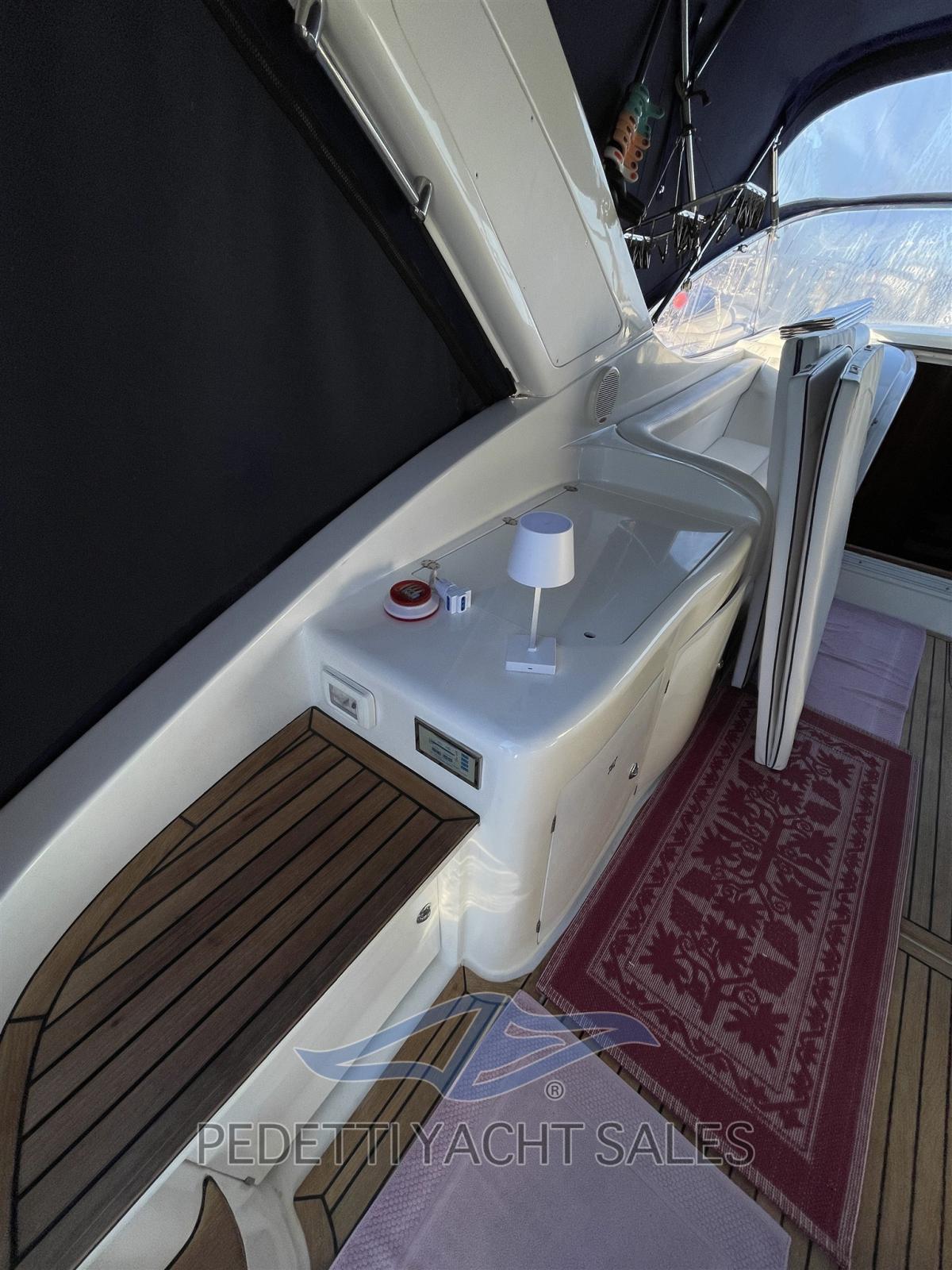 Ouverture du compartiment moteur électrique, Eau sous pression, Douche de cockpit, Lavabo dans le cockpit, Passerelle, Plateforme arrière, Pompe de cale automatique, Pompe de cale manuelle, Porte latérale, Cockpit en teck, Prise de quai, Guindeau électrique, Echelle de bain, table de cockpit, Table pliante de salon.