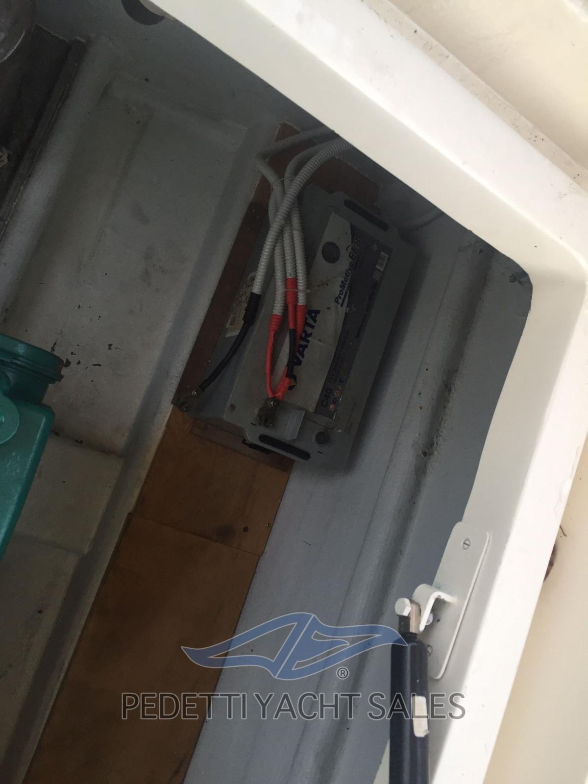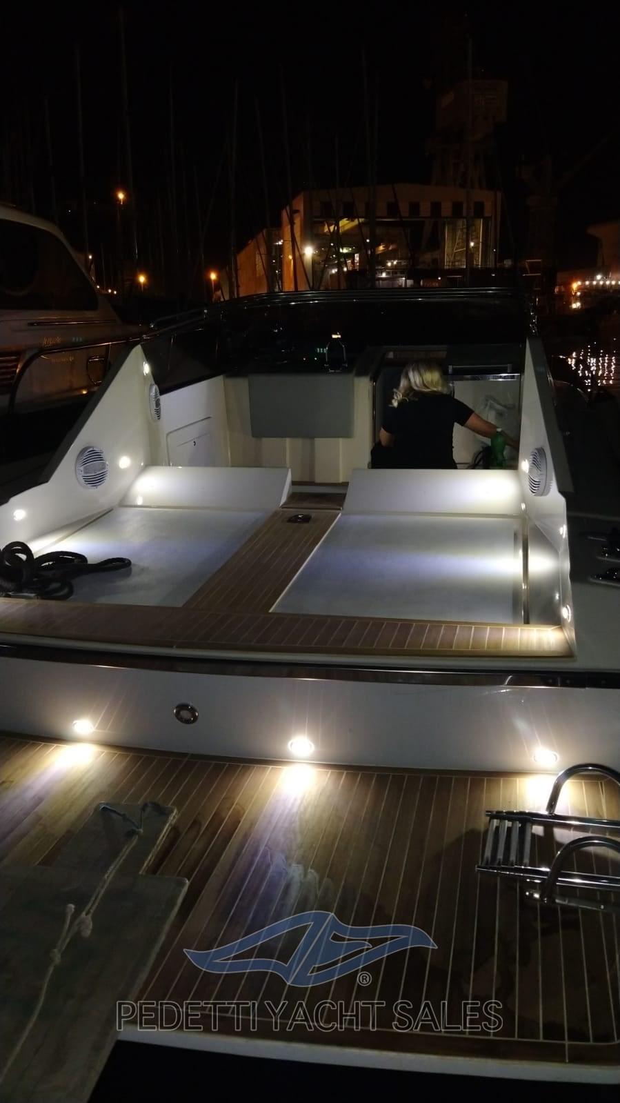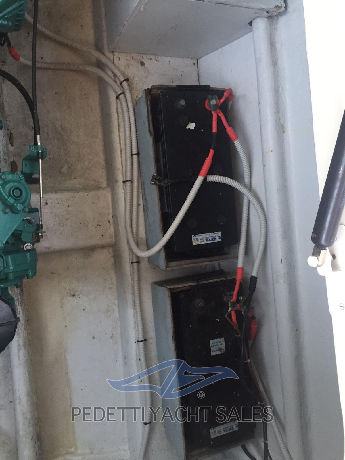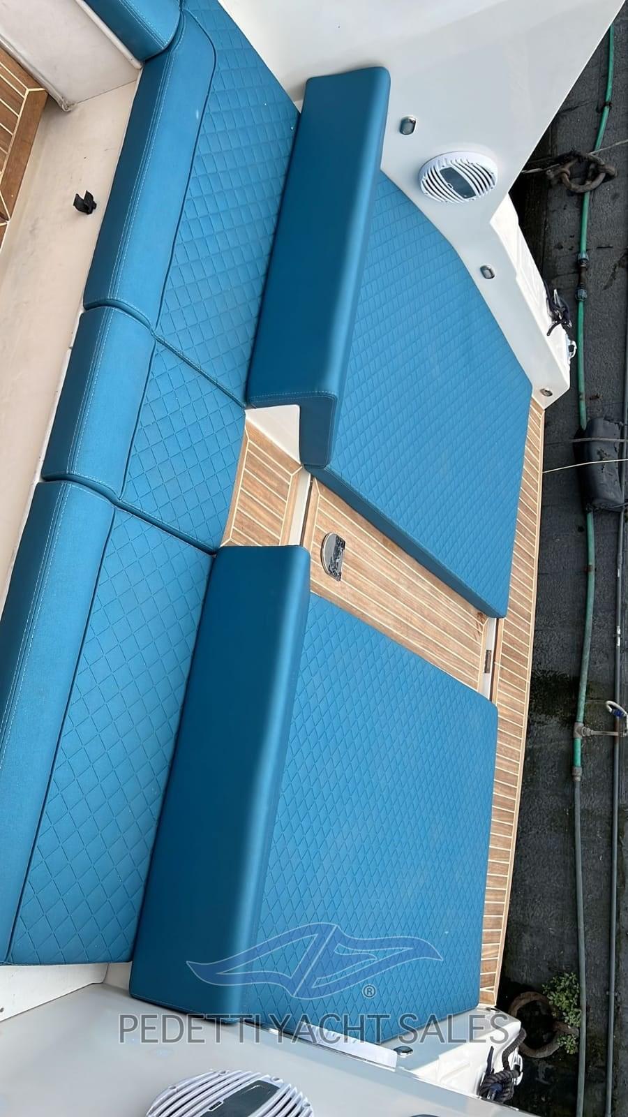 Instruments Volvo Penta, panneau de commande refait, nouveau système électrique total, système audio à 4 haut-parleurs Hertz avec caisson de basses, nouveaux feux LED, en 2022 les travaux suivants ont été effectués : treuil révisé, nouvelle sellerie, auvent en acier, bottazzo en acier, garde-corps en acier, nouveau pare-brise, nouveau réfrigérateur, sellerie interne, cales remplacées, chaudière révisée, télécommande du guindeau, réservoirs débarqués et reconditionnés. Aménagement intérieur de canapés contrastés pouvant être convertis en lits, salle de bain à gauche, chambre double aux dimensions généreuses à l’avant.