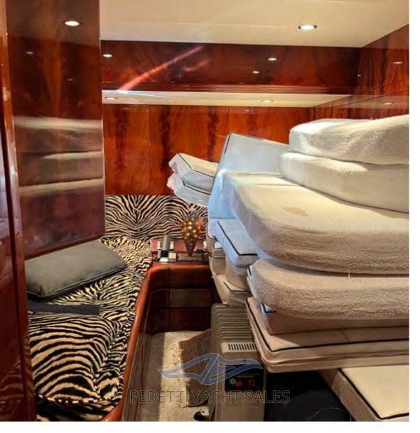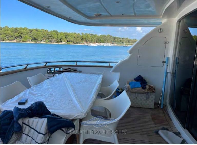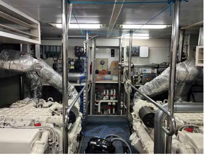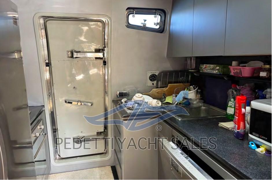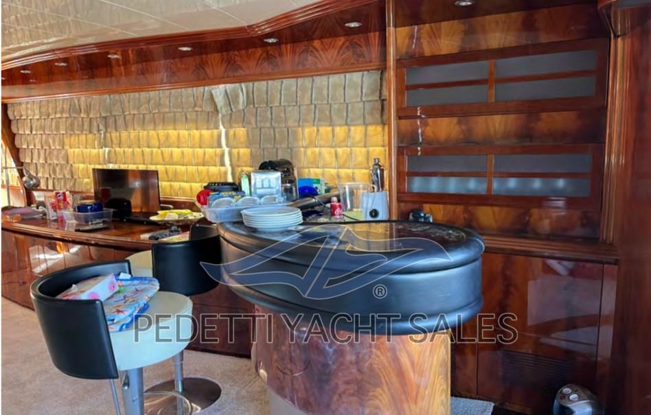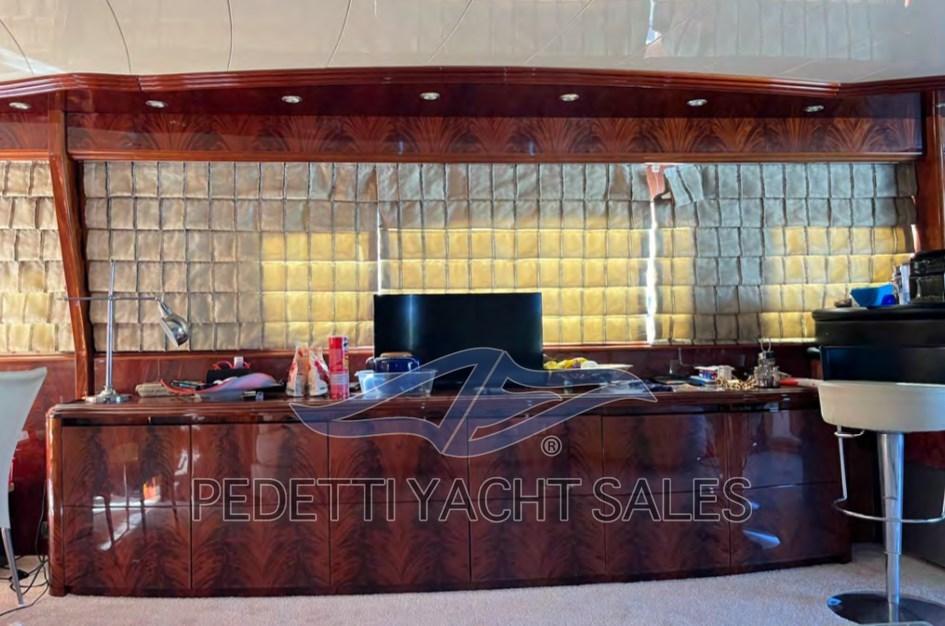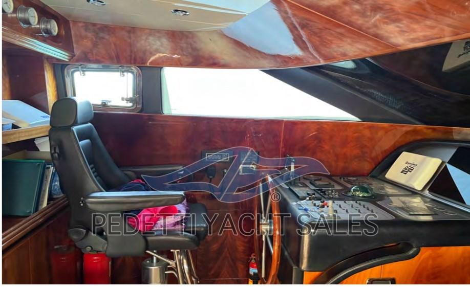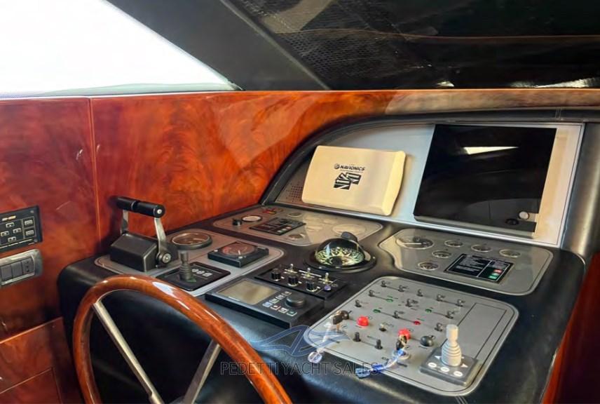 Alarme gaz, Alarme moteur, Alarme de pompe de cale, Eau sous pression, Passavant en teck, Douche de cockpit, Double barre à roue, Phare de poursuite, Flaps hydrauliques, Garage à annexe, Bossoirs pour annexe, Extincteur(s) fixe(s), Lavage de chaine, Éclairage de courtoisie, Spots sous-marins, Passerelle, Pompe de cale automatique, Pompe de cale manuelle, Porte latérale, Porte latérale, Cockpit en teck, Prise de quai, Répétiteur électronique, Rollbar, Guindeau électrique, Echelle de bain, Selles pour Annexe, table de cockpit, Annexe, Filières avec sortie latèrale, Corne, Winch électrique arrière, Winch électrique avant.