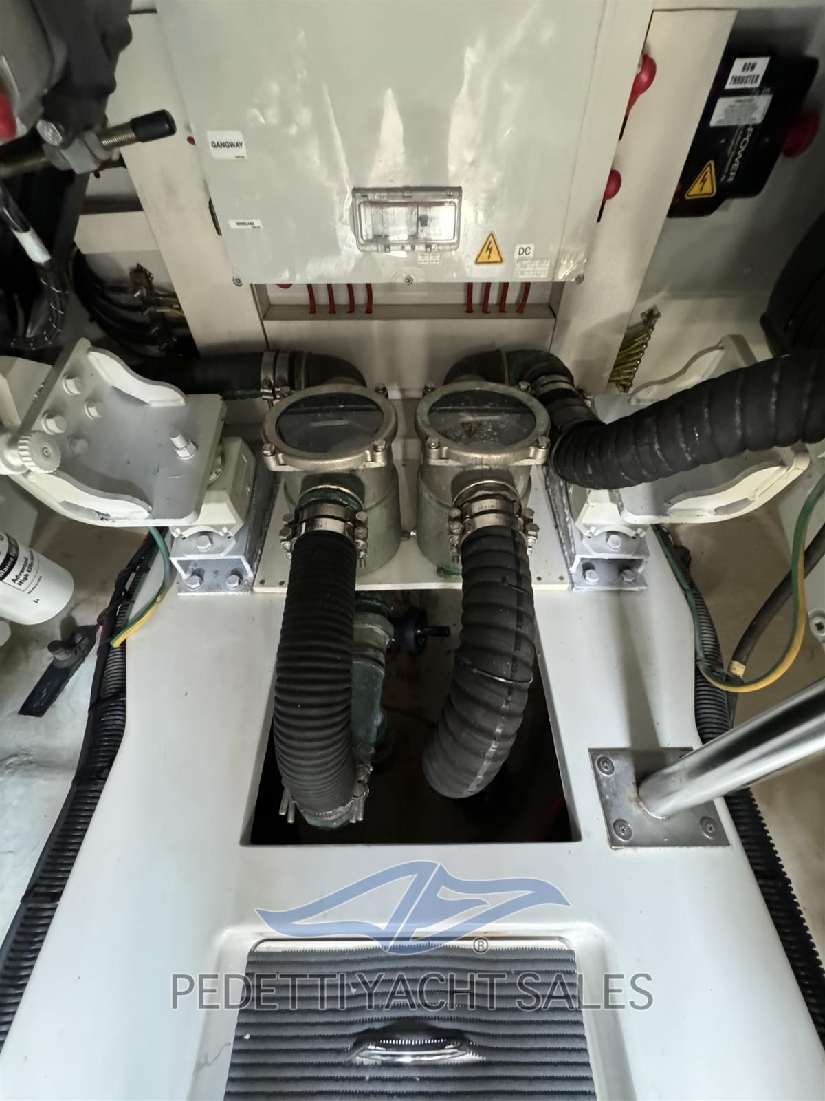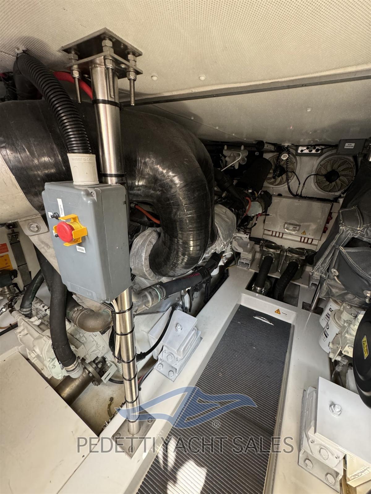 Alarme moteur, Alarme de pompe de cale, Eau sous pression, 10 Batteries (2 motore 4 servizi), Douche de cockpit, Double barre à roue, Phare de poursuite, Hard top, Extincteur(s) fixe(s), Indicateurs de flaps, Lavage de chaine, Éclairage de courtoisie, Spots sous-marins, Passerelle, Pompe de cale automatique, Pompe de cale manuelle, Porte latérale, Cockpit en teck, Prise de quai, Onduleur, Répétiteur électronique, Rollbar, Guindeau électrique, Echelle de bain, Selles pour Annexe, Stabilisateurs (Seekeper), table de cockpit, Annexe, Corne, 2 Winch électrique arrière.