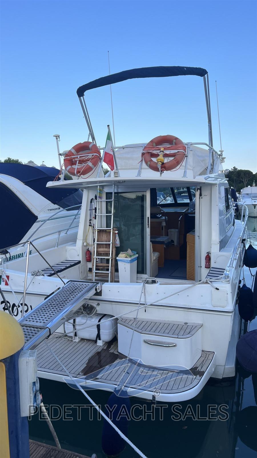 GPS, Pilote automatique (transducteur en cours de remplacement), Traceur, WHF, Alarmes de cale, Ancre, Guindeau électrique, Autoclave, Chargeur de batterie, hélice, douche extérieure, Propulseur d’étrave, Phare réglable, volets hydrauliques, lutte contre l’incendie, lumières sous-marines, passerelle hydraulique, pompe de cale automatique, cockpit teck, presse de quai 220v, table de carré pliante, annexe neuve avec hors-bord, klaxon, antivol, chaudière, prises internes 12v et 220v, toilettes marines manuelles, équipement de sécurité dans un rayon de 50 miles, haut-parleurs, chaîne stéréo, télévision, radio, cuisine, cuisinière, réfrigérateur interne, auvent, housse de cockpit, coussins complets fly stern sundeck, stores, couverture de flybridge, générateur Paguro 4000 3,5Kw/h heures moto 18,6