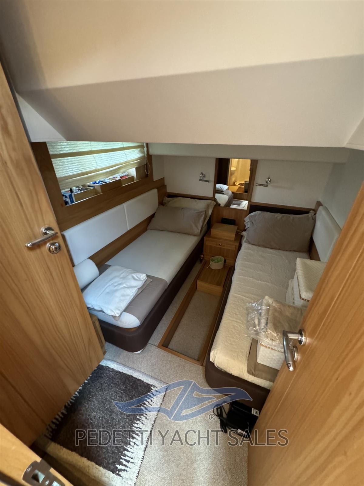 Bateau de 2009 parfaitement entretenu, il s’agit d’une cabine de trois cabines plus une cabine de marin avec entrée extérieure, toutes gérées par une salle de bain avec douche. Élégante dînette avec mobilier clair, cuisine et bar d’angle tribord murs en face du canapé avec table. Parquet maintenant recouvert d’une moquette blanche. Les moteurs régulièrement entretenus par l’homme, y compris le service de 1000 heures, ont actuellement 1100 heures, ce bateau sera disponible en septembre. Extérieurement, il est brillant avec d’excellentes finitions et des tissus en parfait état.