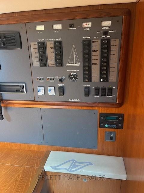 Alarme gaz, Alarme moteur, Alarme de pompe de cale, Eau sous pression, Douche de cockpit, Passerelle, Pompe de cale automatique, Pompe de cale manuelle, Cockpit en teck, Prise de quai, Guindeau électrique, Echelle de bain, table de cockpit, Windex.