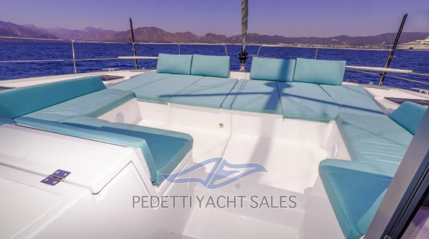 Alarme gaz, Alarme moteur, Alarme de pompe de cale, Eau sous pression, Passavant en teck, Douche de cockpit, Double barre à roue, Phares fixes arrière, Phare de poursuite, Bossoirs pour annexe, Lavabo dans le cockpit, Éclairage de courtoisie, Spots sous-marins, Plateforme arrière, Pompe de cale automatique, Pompe de cale manuelle, Porte latérale, Cockpit en teck, Prise de quai, Répétiteur électronique, Guindeau Hydraulique, Gréement Rod, Echelle de bain, Selles pour Annexe, table de cockpit, Table pliante de salon, Filières avec sortie latèrale, Corne, Winch, Winch électrique arrière, Winch électrique avant.