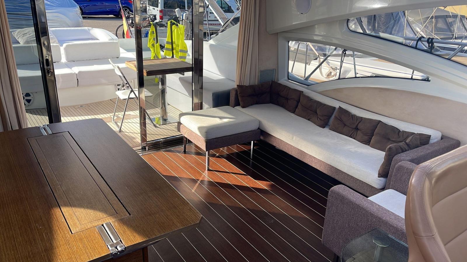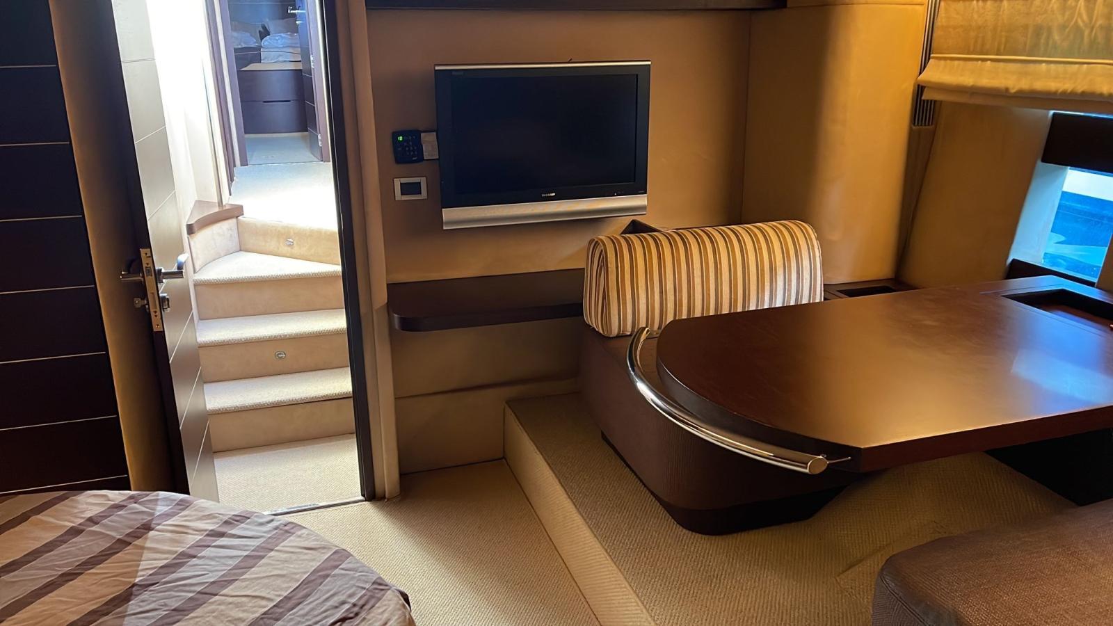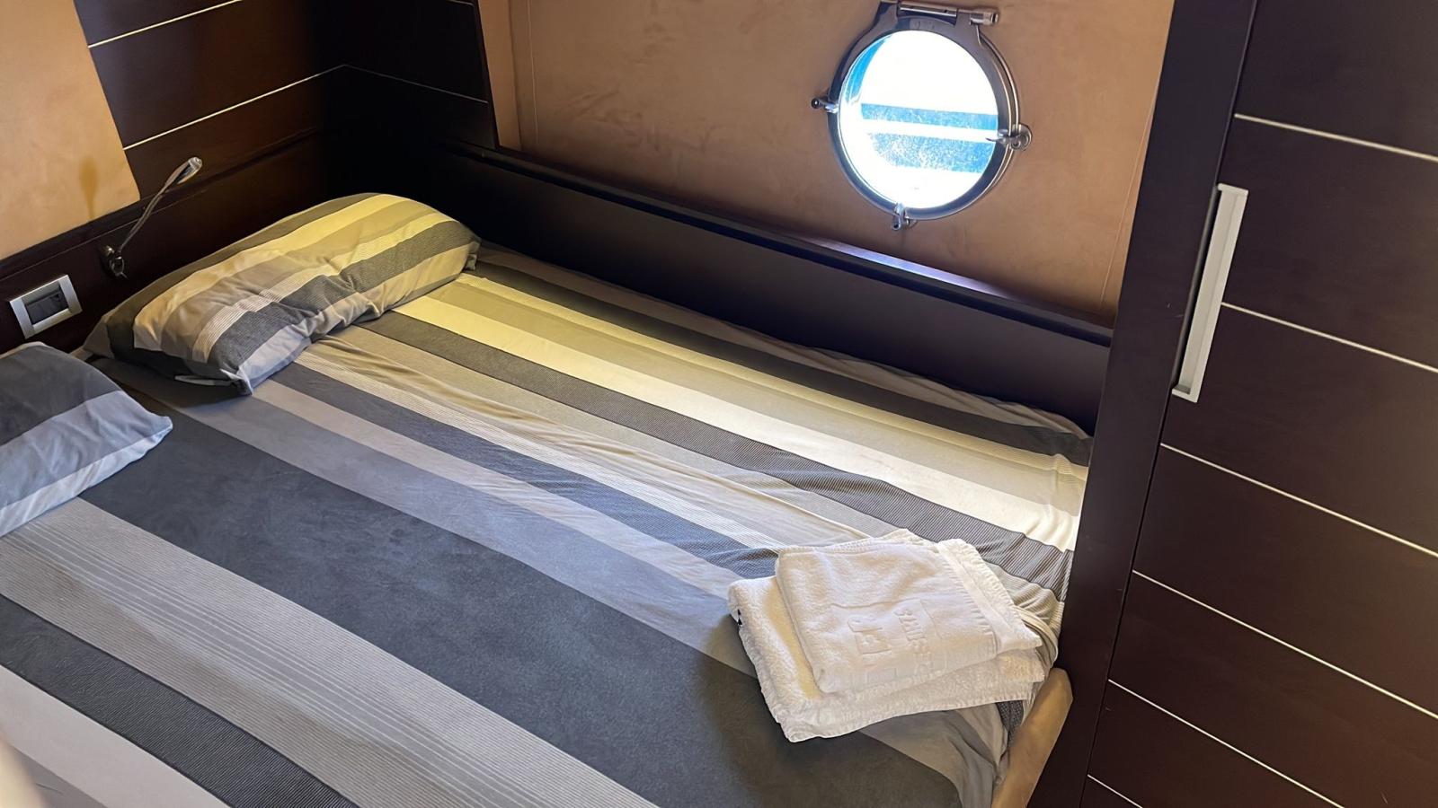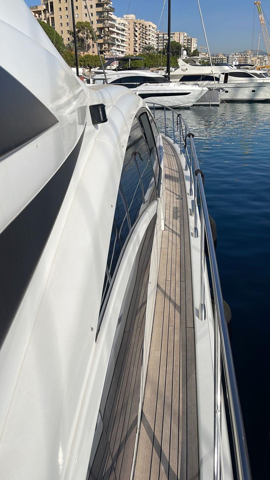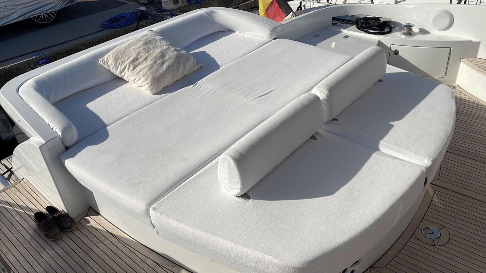 Cet Azimut 68 S de 2007 est un Open Hardtop avec une superstructure blanche nacrée et une coque mate noire. Grâce à l’énorme toit ouvrant électrique, il vous donne l’impression qu’il s’agit d’un yacht ouvert. C’est le yacht idéal pour les longs week-ends de farniente pour profiter de la mer et du soleil dans une cala tranquille. Étant très élégant, il attire les vues tout en étant très marin et navigue très confortablement à 26 Kts grâce à ses deux moteurs MAN V12 de 1.380 Hp chacun.