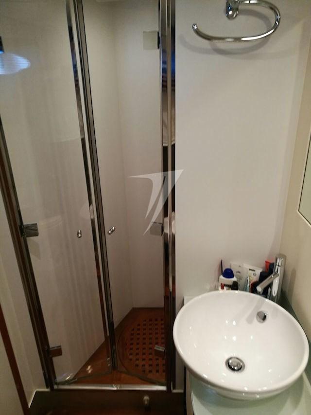 Douche de cockpit, Compresseur de plongée, Pompe de cale manuelle, Cockpit en teck, Guindeau électrique, Echelle de bain, table de cockpit.