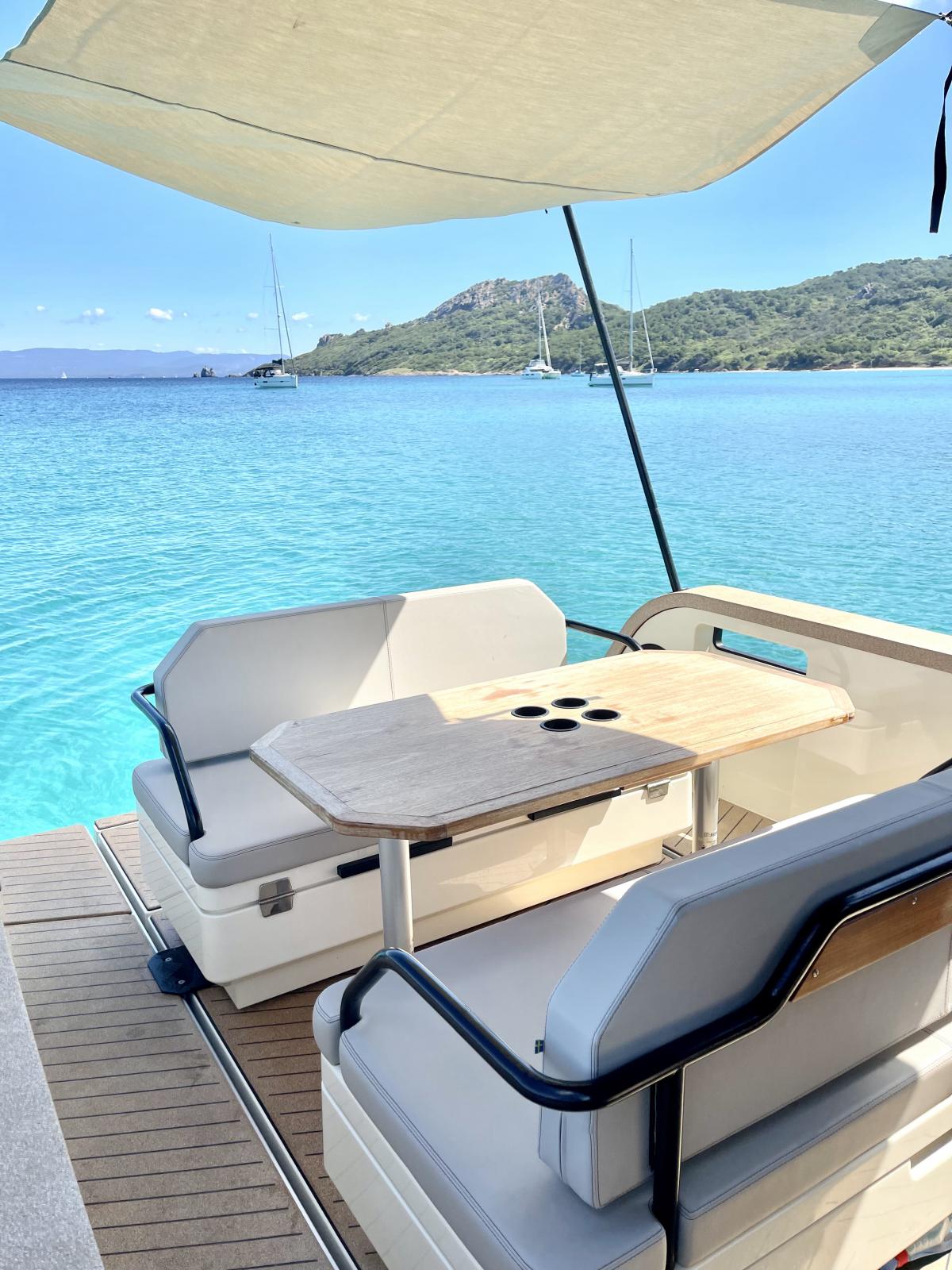 De grands espaces ouverts et de nombreuses options de sièges en font un bateau idéal pour tout, de l'organisation d'un dîner à une journée amusante en mer ou un bain de soleil.