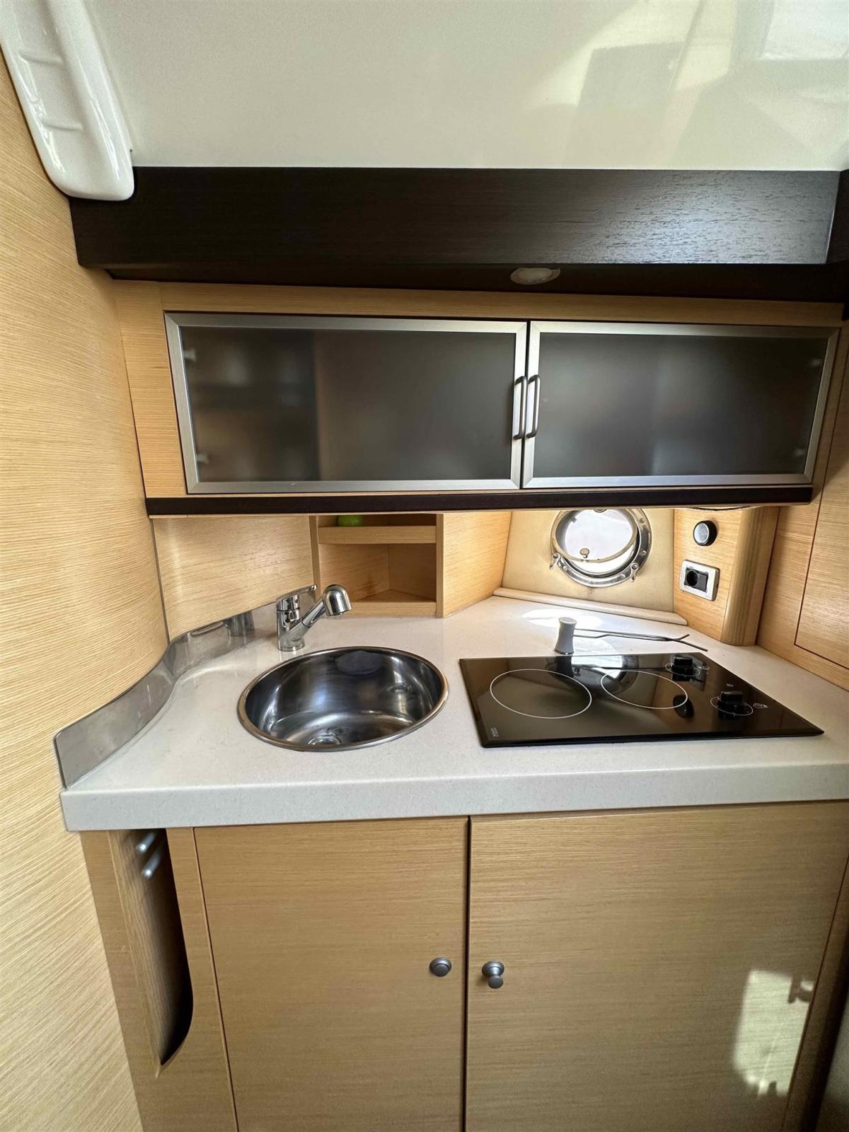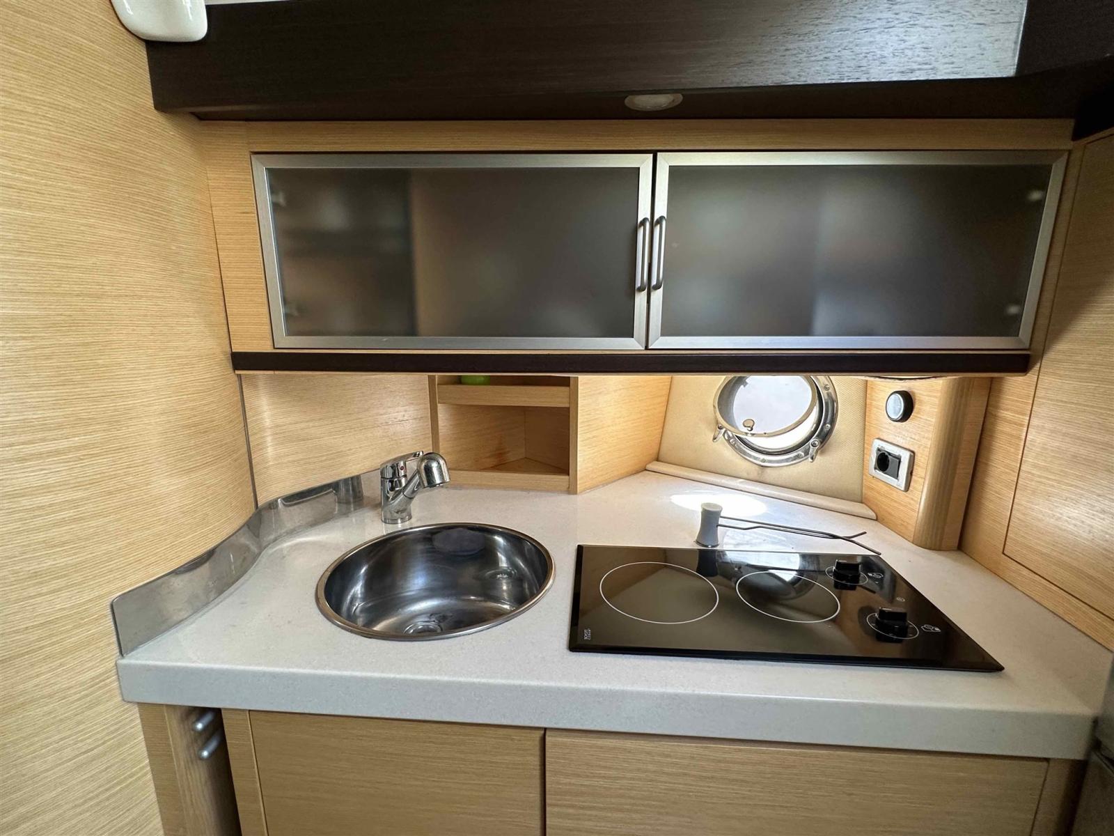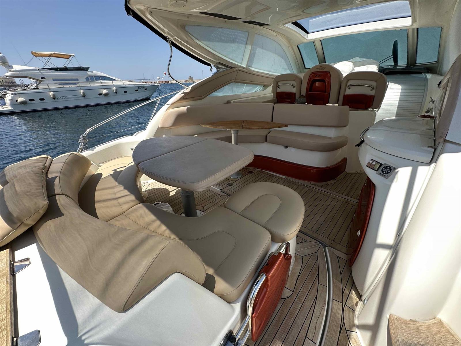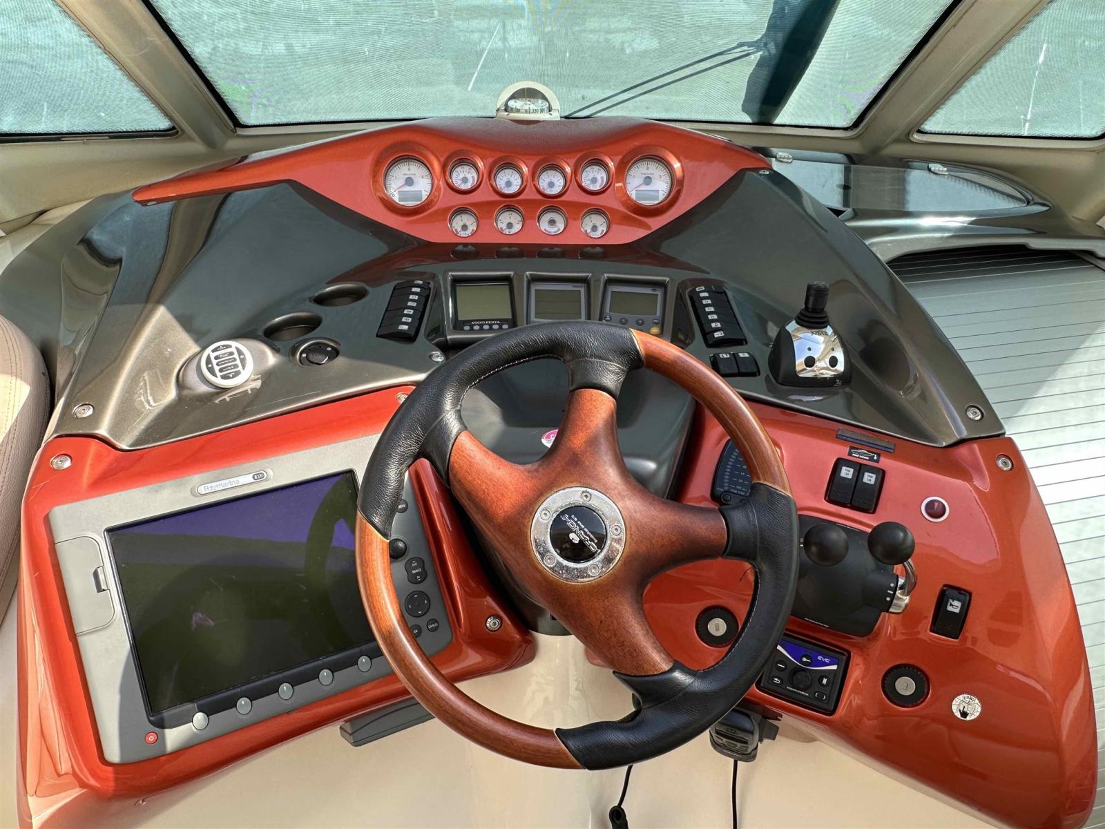 Alarme moteur, Alarme de pompe de cale, Ouverture du compartiment moteur électrique, Eau sous pression, Douche de cockpit, Flaps hydrauliques, Hard top, Extincteur(s) fixe(s), Indicateurs de flaps, Lavage de chaine, Lavabo dans le cockpit, Spots sous-marins, Passerelle, Pompe de cale automatique, Cockpit en teck, Prise de quai, Connexion eau sous pression à quai, Guindeau électrique, Echelle de bain, table de cockpit, Table pliante de salon, Corne.