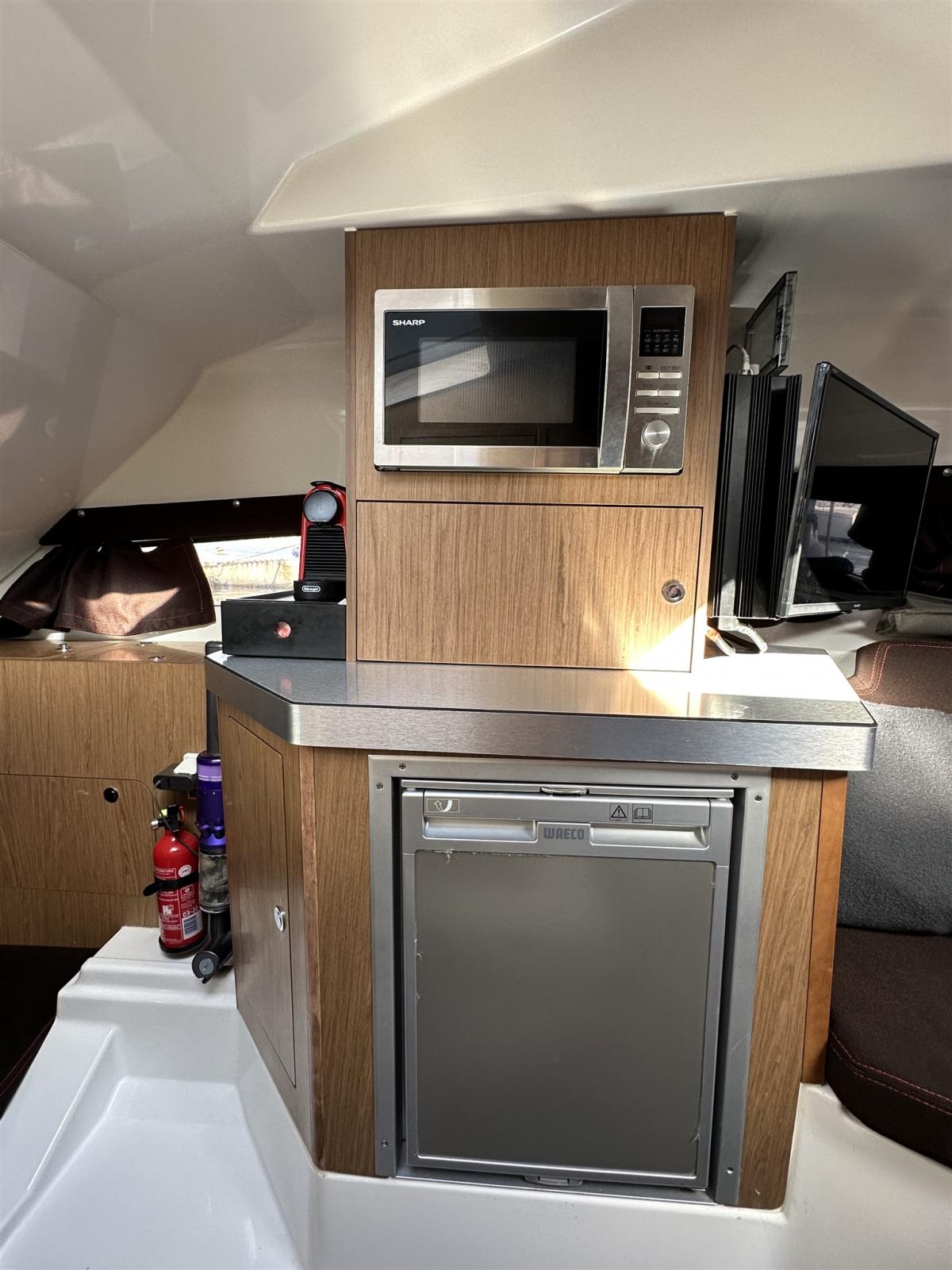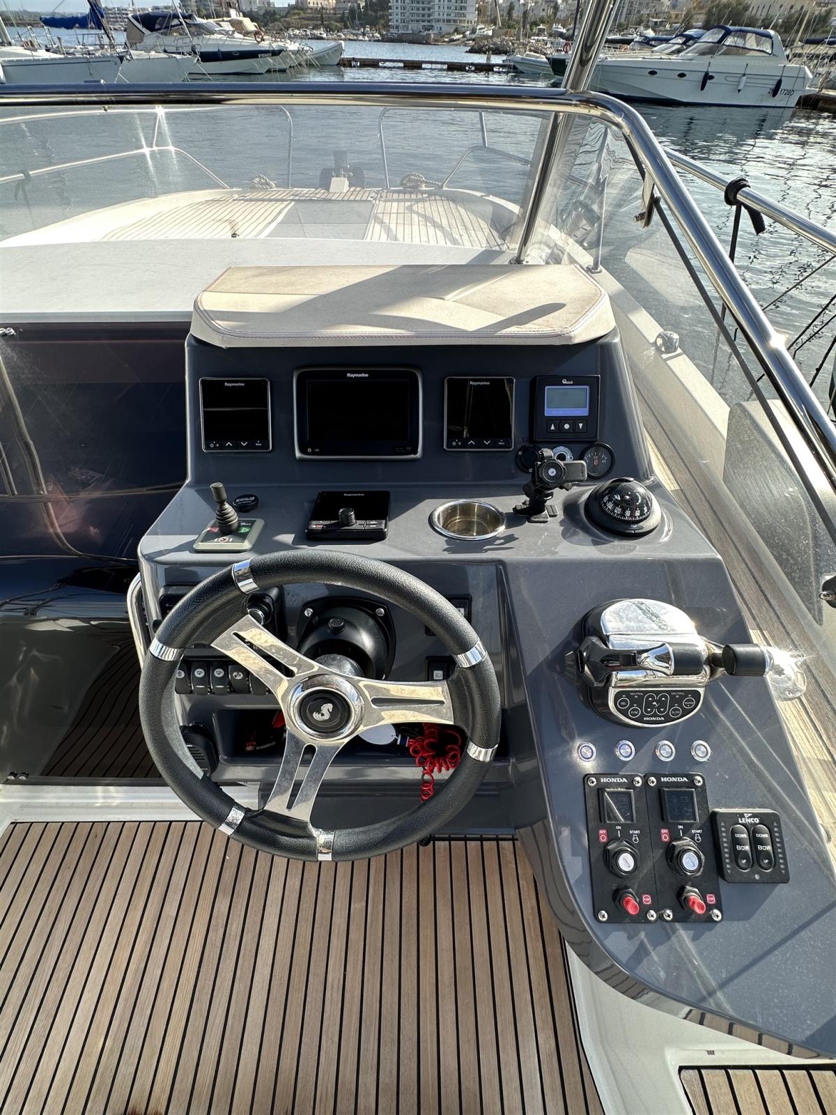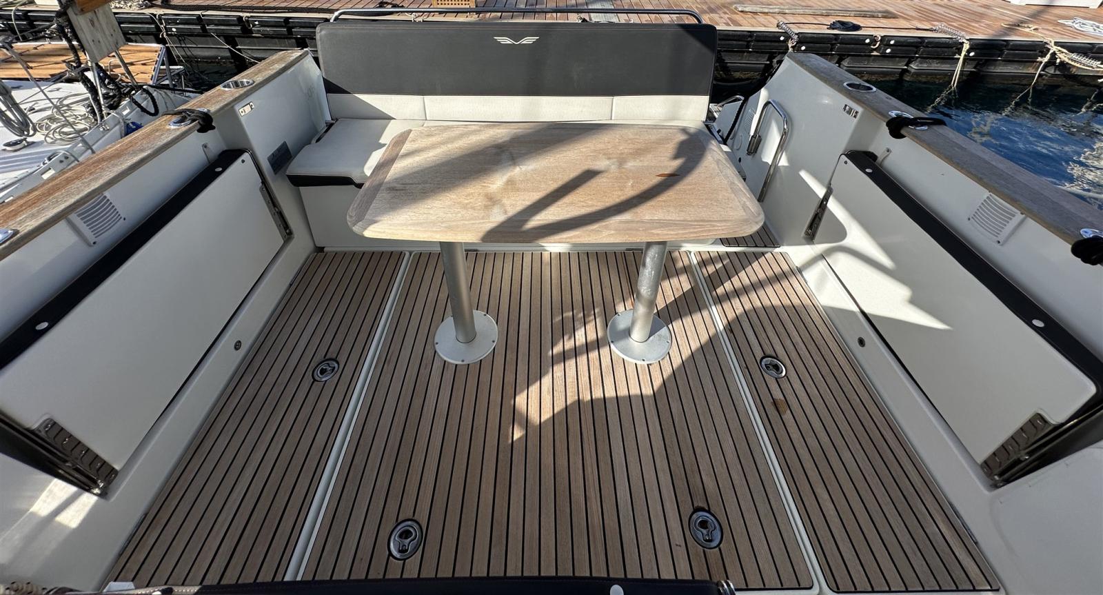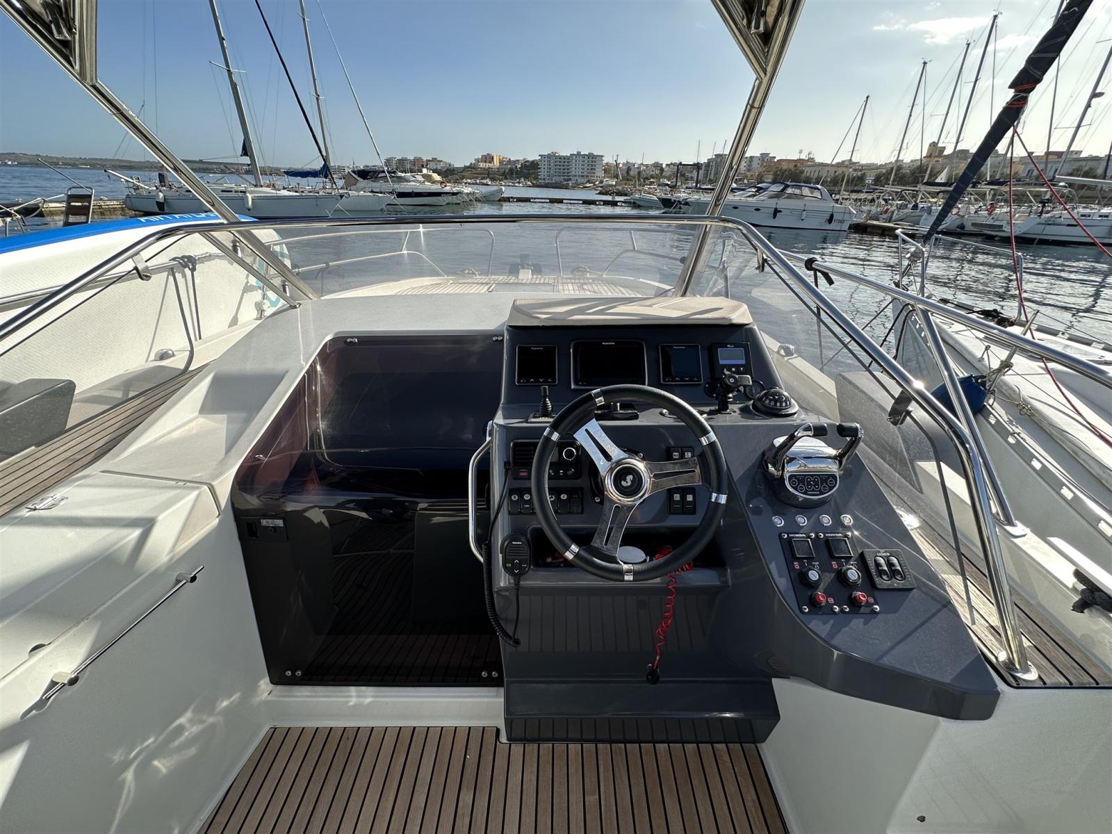 Alarme moteur, Alarme de pompe de cale, Eau sous pression, Passavant en teck, Douche de cockpit, Flaps électriques, Indicateurs de flaps, Lavabo dans le cockpit, Éclairage de courtoisie, Spots sous-marins, Pompe de cale automatique, Cockpit en teck, Prise de quai, Guindeau électrique, Echelle de bain, table de cockpit, Table pliante de salon, Corne, T-Top, Pont en teck.