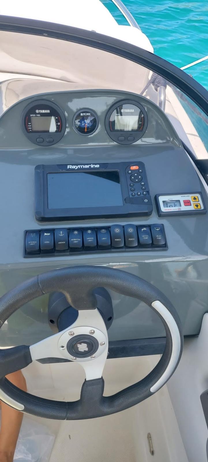 Alarme moteur, Eau sous pression, 2 Batteries, Douche de cockpit, Éclairage de courtoisie, Spots sous-marins, Plateforme arrière, Pompe de cale automatique, Prise de quai, Guindeau électrique, Echelle de bain, table de cockpit, Corne.
