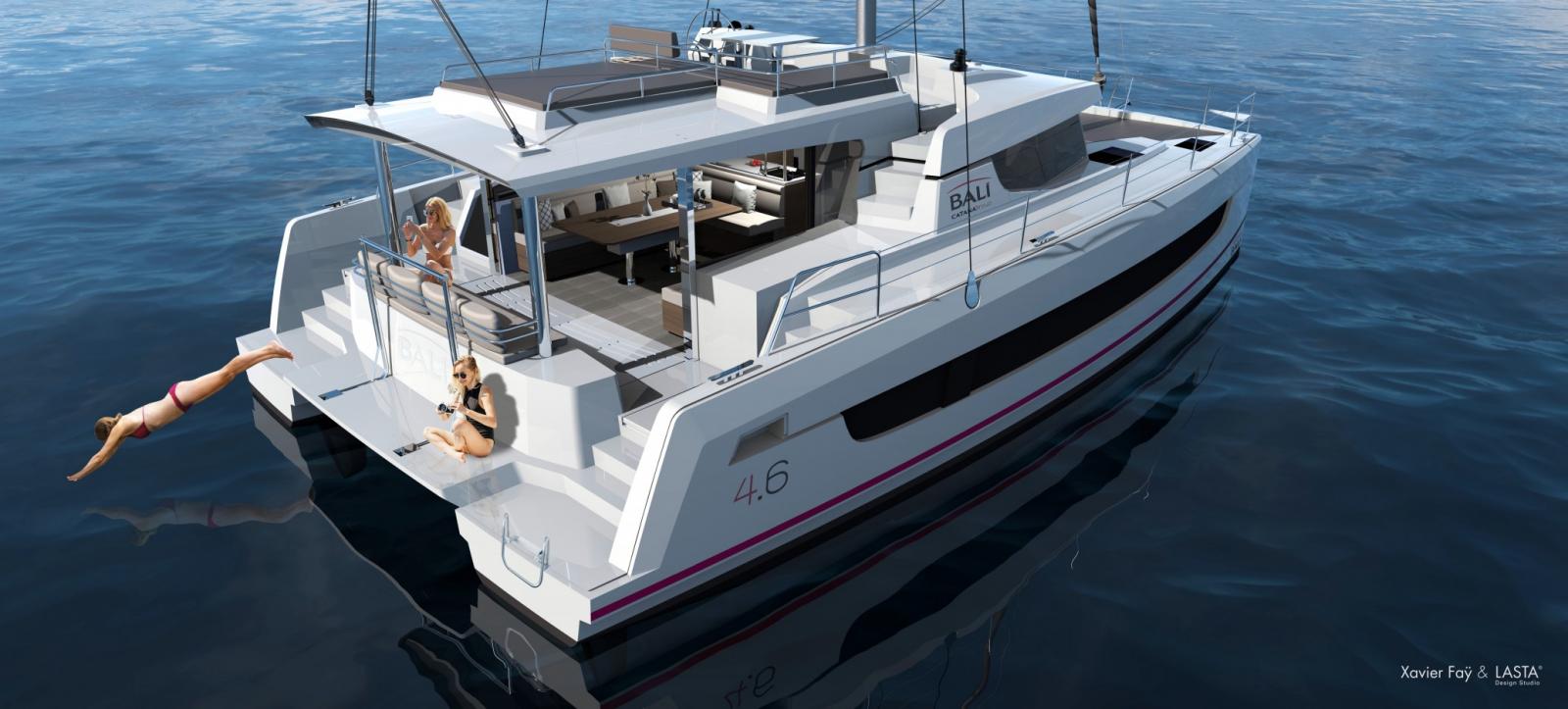 Fort des concepts innovants de la marque (grand cockpit avant, porte arrière oscillo-basculante entre autres) la grande nouveauté du Bali 4.6 sera de disposer de 5 cabines, inédit sur un 46 pieds.