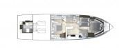 Alarme gaz, Alarme moteur, Alarme de pompe de cale, Eau sous pression, Passavant en teck, Couleur spéciale, Douche de cockpit, Phares fixes arrière, Phare de poursuite, Flaps électriques, Garage à annexe, Hard top, Indicateurs de flaps, Lavabo dans le cockpit, Éclairage de courtoisie, Spots sous-marins, Passerelle (Idraulica), Plateforme arrière (Idraulica), Pompe de cale automatique, Porte latérale, Cockpit en teck, Prise de quai, Connexion eau sous pression à quai, Guindeau électrique, Echelle de bain, table de cockpit, Table pliante de salon, Corne, Winch électrique arrière.