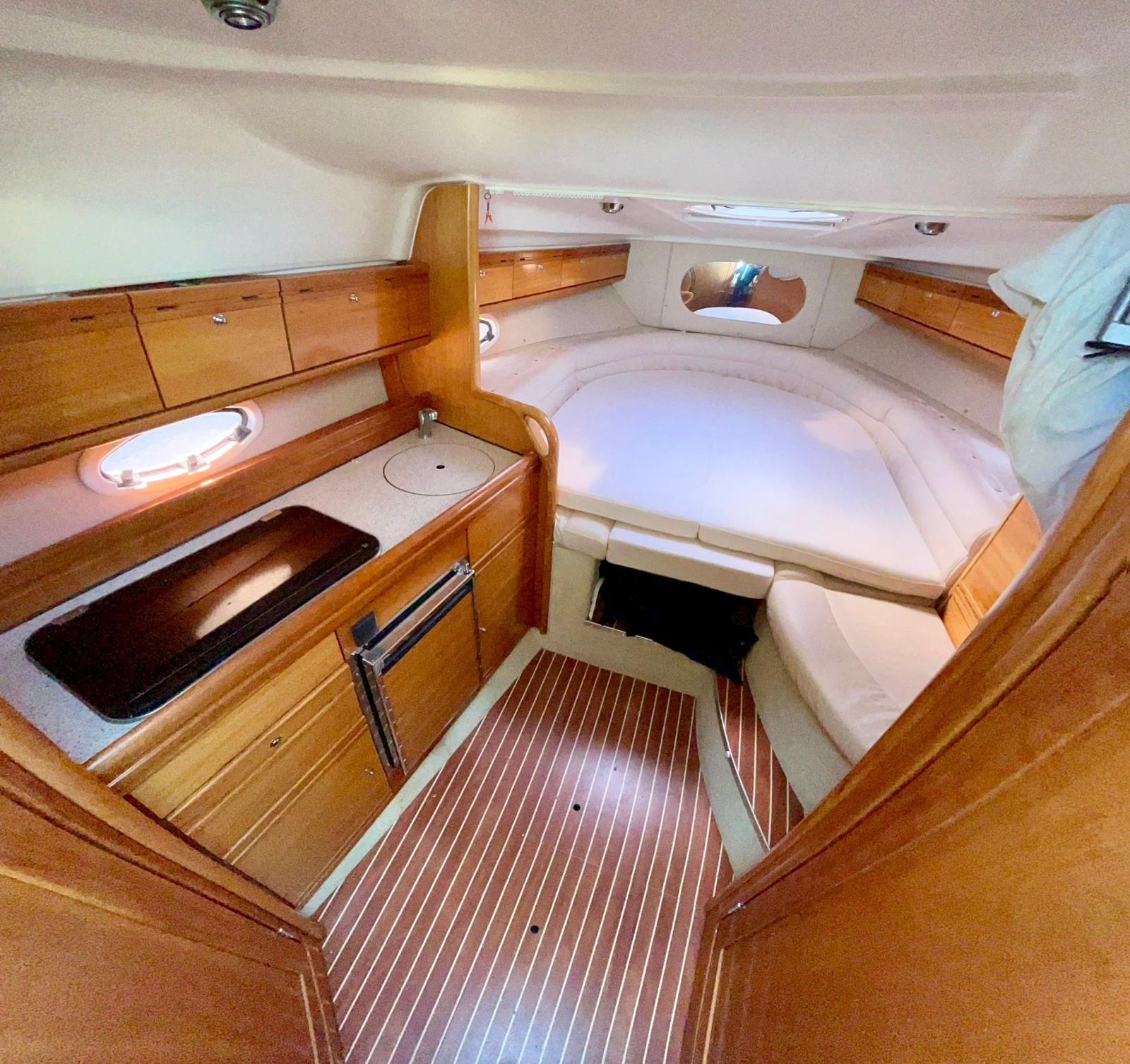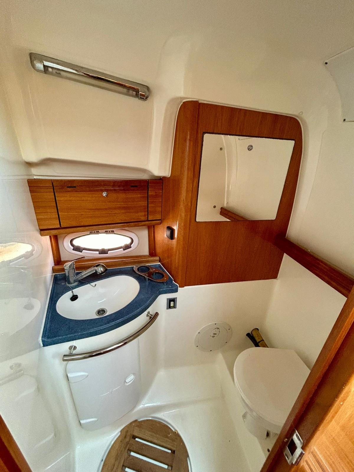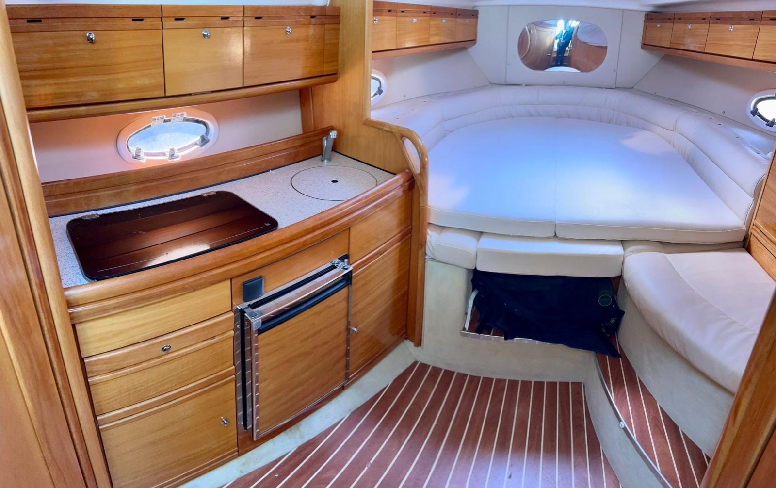 Alarme moteur, Eau sous pression, Douche de cockpit, Flaps hydrauliques, Pompe de cale automatique, Guindeau électrique, Echelle de bain, Corne.