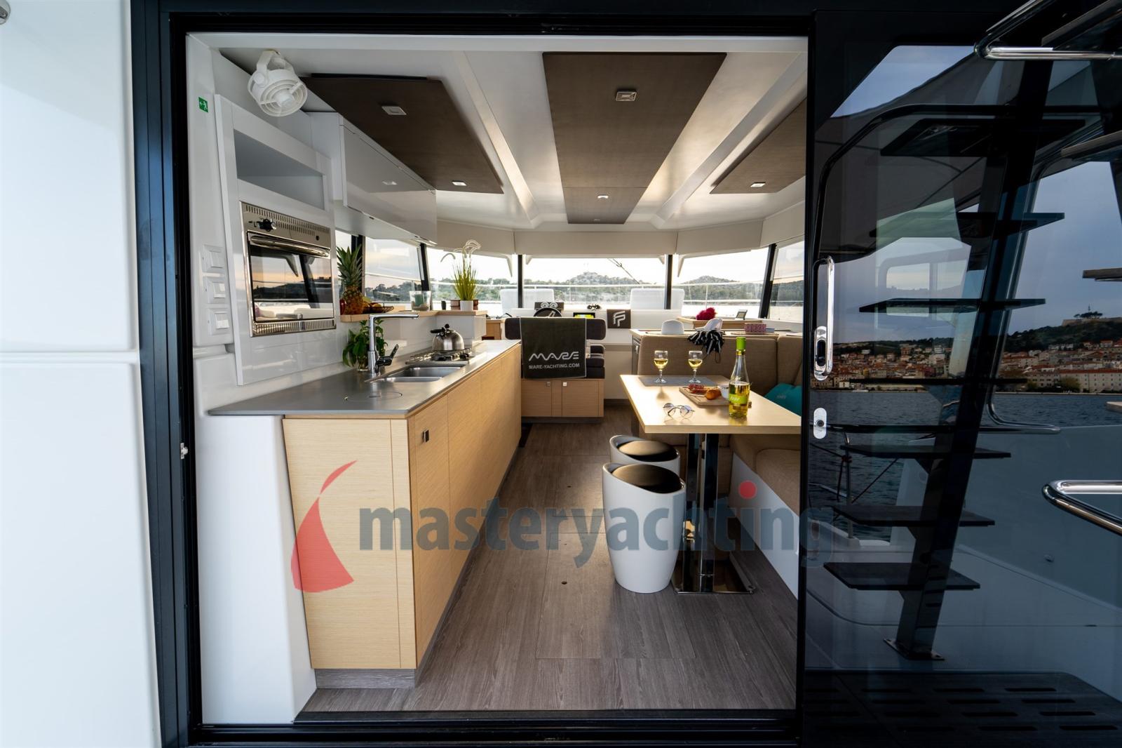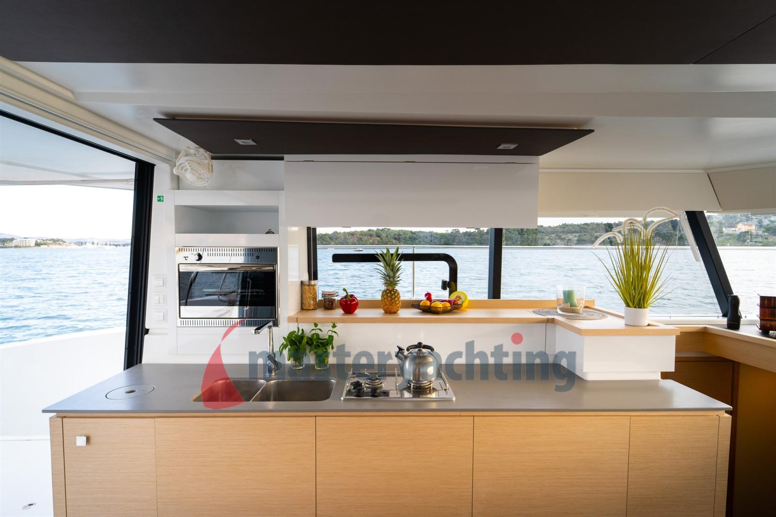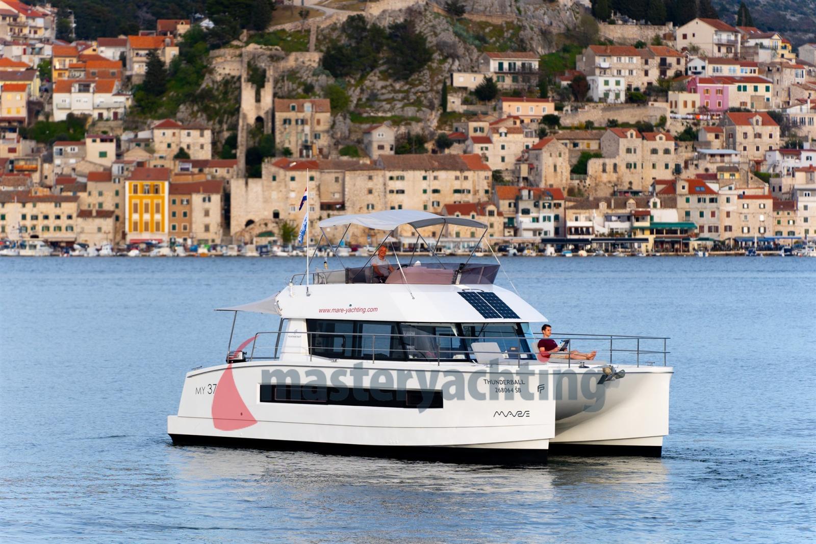 Ce Fountaine Pajot MY 37 « Thunderball » est le bateau parfait pour profiter de la vie sur l’eau et vous invite à passer de merveilleux moments entre amis ou en famille. Qu’il s’agisse d’une baie rapide d’une baie à l’autre, d’une dérive lente sur l’eau ou de moments atmosphériques au mouillage, le Thunderball est la bonne plate-forme. Depuis le flybridge, vous pouvez profiter d’une vue d’ensemble parfaite et de moments uniques au coucher du soleil que pratiquement aucun autre navire de cette catégorie ne peut offrir. Le Fountaine Pajot MY 37 dispose de cabines au design moderne, d’un salon inondé de lumière avec des fenêtres panoramiques et un accès intégré au cockpit, d’un magnifique flybridge avec poste de pilotage, d’un bain de soleil spacieux et d’un coin salon confortable avec une table à manger en teck. Avec ses deux moteurs, le Thunderball peut être facilement manœuvré et amarré à la fois depuis le flybridge et le salon. Les deux moteurs Volvo Penta D3, à la fois puissants et économiques, totalisent environ 1 450 heures de fonctionnement. Ils ont été régulièrement entretenus selon les normes les plus élevées et viennent de recevoir un entretien majeur, y compris le changement de la courroie de distribution (intervalle d’entretien de 1 500 heures). Le Powerkat est en très bon état et est « PRÊT À PARTIR ». Il y a un équipement de sécurité complet et complet ainsi qu’un canot pneumatique avec moteur hors-bord de 5 CV. Contactez-nous pour un rendez-vous de visite (également en ligne), un essai routier ou un contrôle technique. Nous serions heureux de vous en dire plus sur ce magnifique catamaran à moteur.