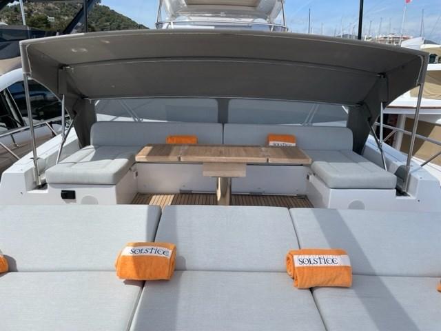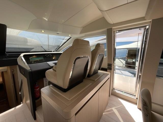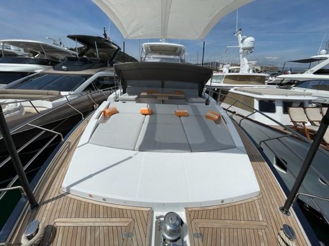 Passavant en teck, Douche de cockpit, Hard top, Passerelle (hydraulique Opacmare), Plateforme arrière (en teck), Porte latérale, Cockpit en teck, Stabilisateurs (Seakeeper NG16), table de cockpit.