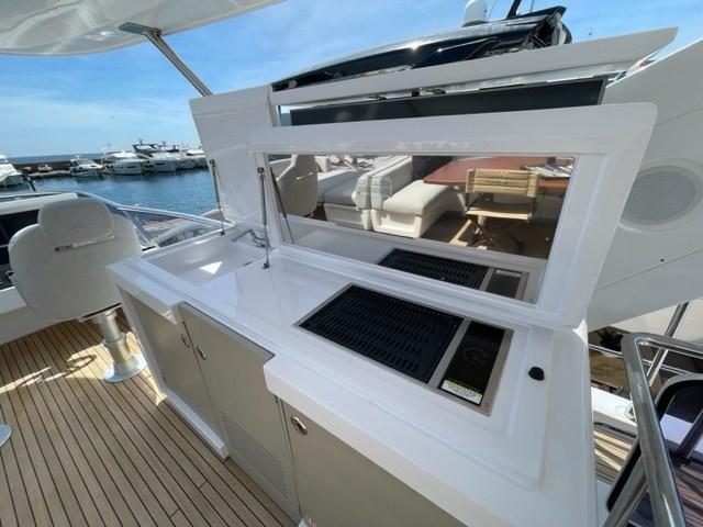 Sèche linge, Réfrigérateur extérieur (cockpit), Machine à glaçons (Flybridge), Lave-vaisselle, Lave-linge, Plaque vitrocéramique, Winecooler.