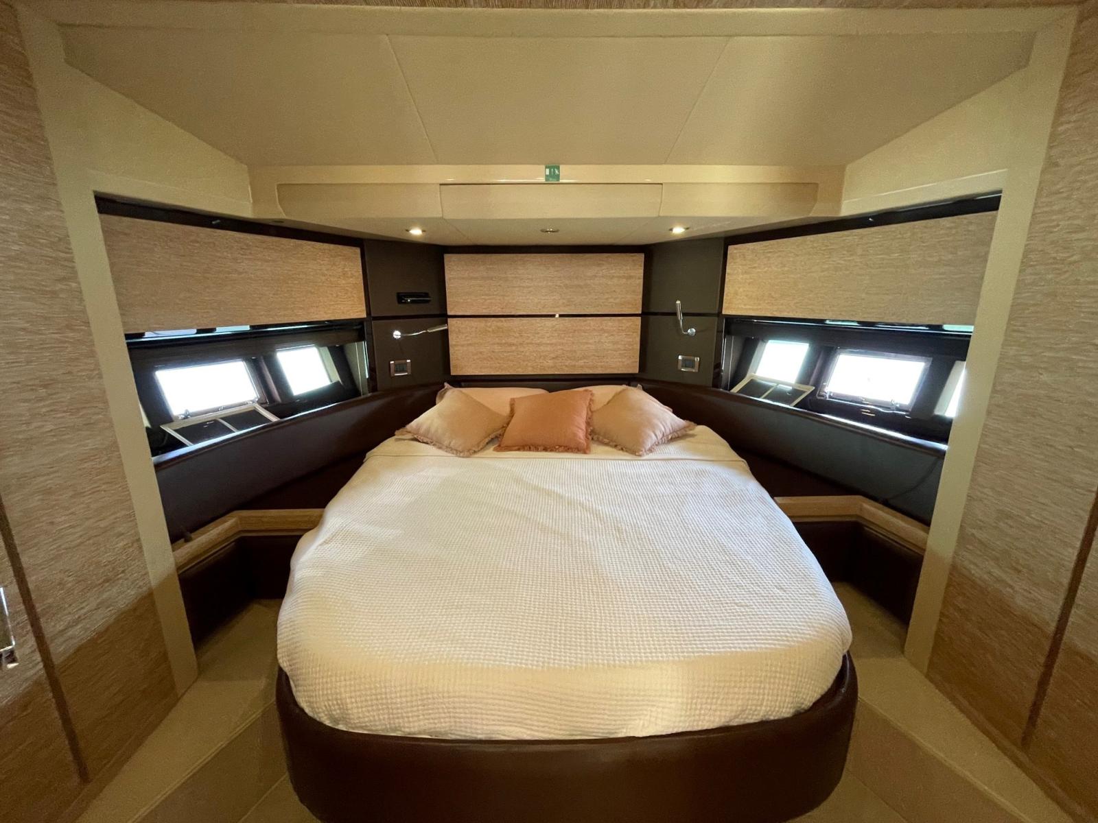 Flybridge classique avec de beaux matériaux utilisés, version 3 cabines 2 salles d'eau dont une spacieuse suite propriétaire située au centre du navire pour plus de confort !