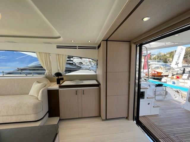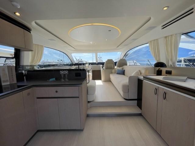 L'Azimut 53 FLY est un bateau très lumineux grâce à ses grandes vitres laissant entrer la lumière naturelle, mettant en valeur les matériaux nobles made in Italy...