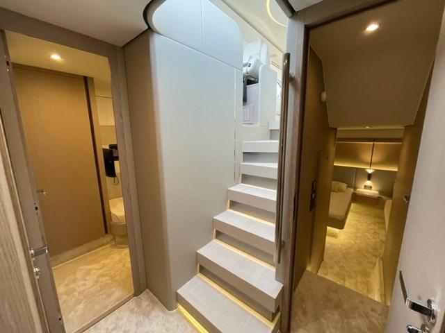 Auto Dynamic Trim Interceptor, Phare de poursuite, Éclairage de courtoisie, Passerelle (hydraulique), Plateforme arrière, Cockpit en teck, Prise de quai, Guindeau électrique, Echelle de bain, table de cockpit (fixe en teck), Pont en teck (au cockpit et plateforme de bain), 2 Winch électrique arrière.