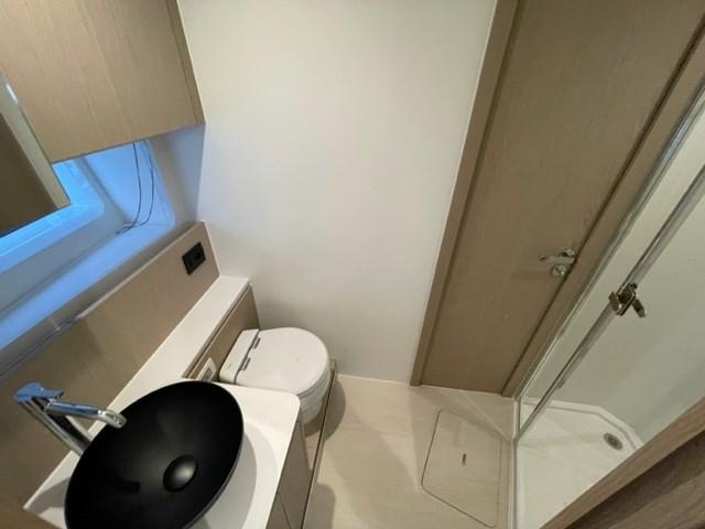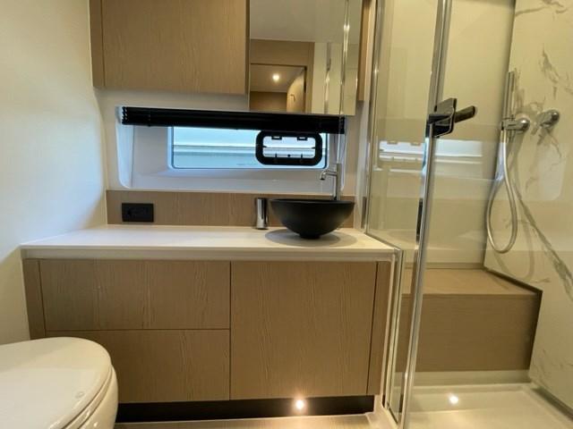 Air conditionné (60.000 BTU), BBQ/ Grill (au fly), Coffre-fort (dans cabine master), Plancher intérieur en bois (salon et escalier vers pont inférieur), Caméra vidéo, 2 Toilettes électriques.