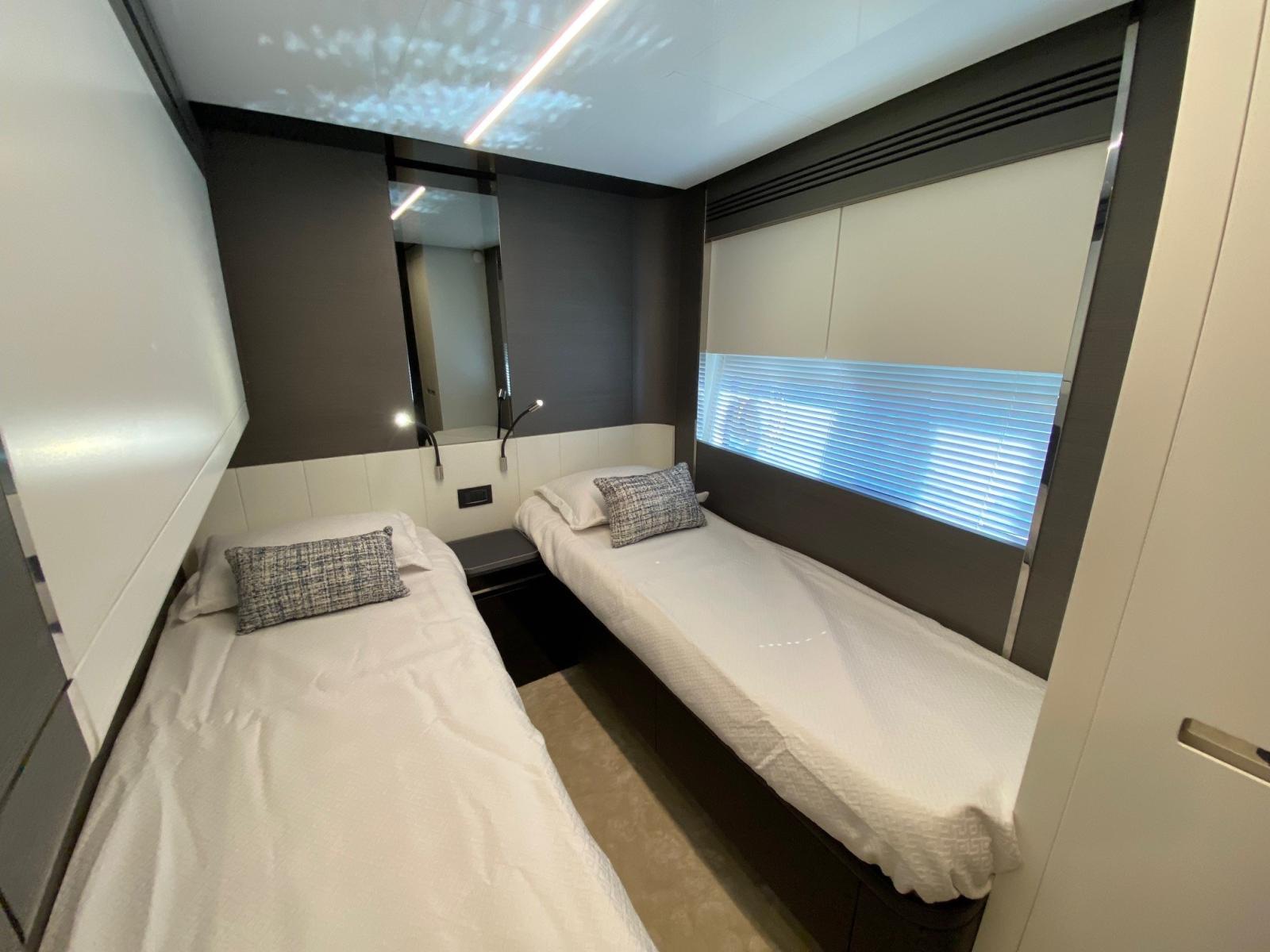 Full options : 2 groupes electrogènes, Seakeeper SK18, climatisation, 3ème poste de commande avec joystick, double garage (jet ski + annexe), passerelle hydraulique, plancher bois dans pont principal, électroménager MIELE, pre dispo antenne SAT, radar, pilote auto, bimini électrique, crew cabin pour 3 pers, 4 cabines confortables ayant chacune leur salle d'eau, dont une magnifique suite propriétaire au centre du navire.