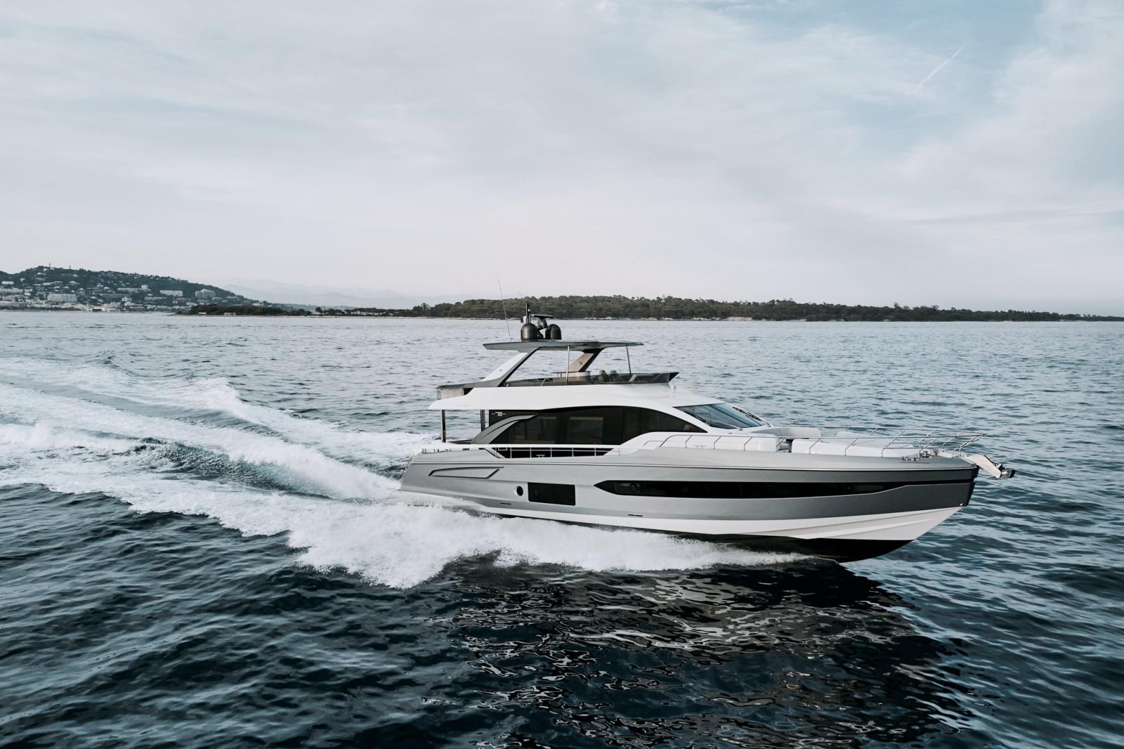 Propulseur de poupe (11.4kw), Phare de poursuite (électrique avec commande de contrôle supplémentaire), Hard top (peint en gris Etna), 5 Spots sous-marins (Seavision SV55 RGBW (arrière, côtés)), Passerelle (hydraulique), Stabilisateurs (Seakeeper NG26), Pont en teck (au fly, cockpit).