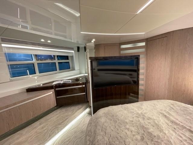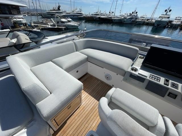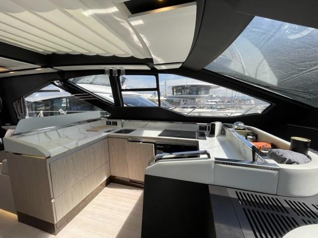Auto Dynamic Trim Interceptor, Eau sous pression, Passavant en teck, Douche de cockpit, Phare de poursuite, Garage à annexe, Hard top, Éclairage de courtoisie, Passerelle, Plateforme arrière, Porte latérale, Cockpit en teck, Prise de quai, Répétiteur électronique, Guindeau électrique, Echelle de bain, Stabilisateurs (SEAKEEPER NG16), table de cockpit, Table pliante de salon, Pont en teck, Winch électrique arrière.