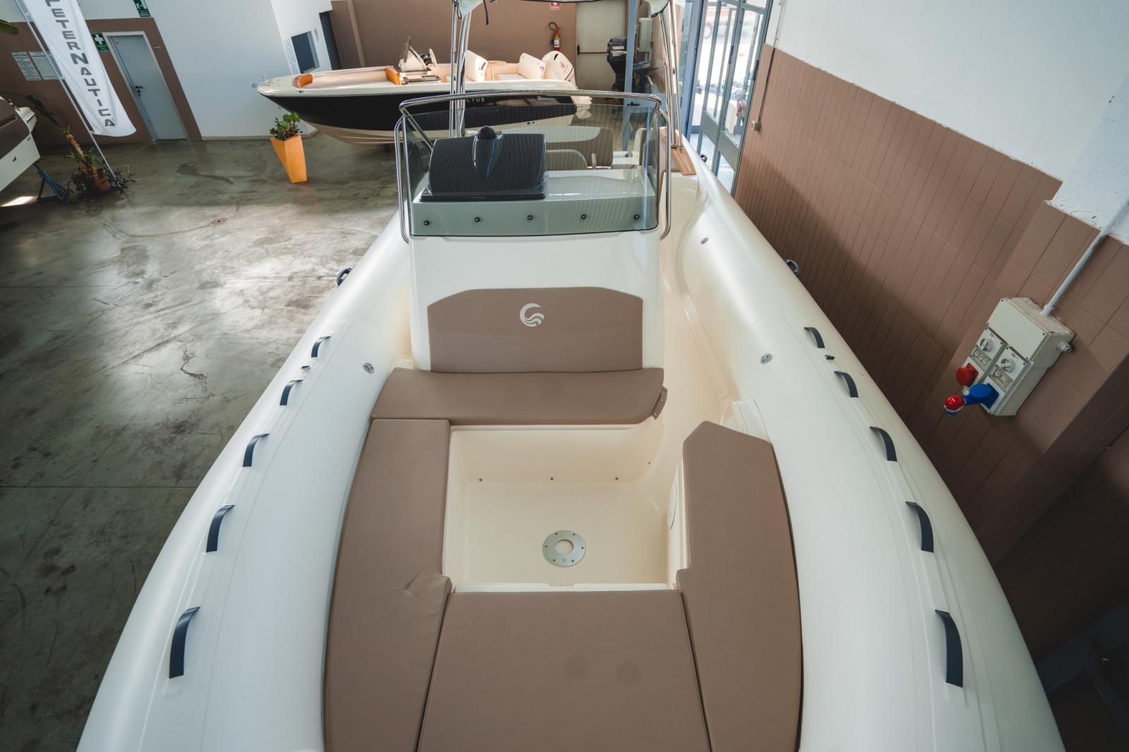 Prêt à être livré beau canot pneumatique du chantier naval Capelli, l’élégant et performant Tempest 800.