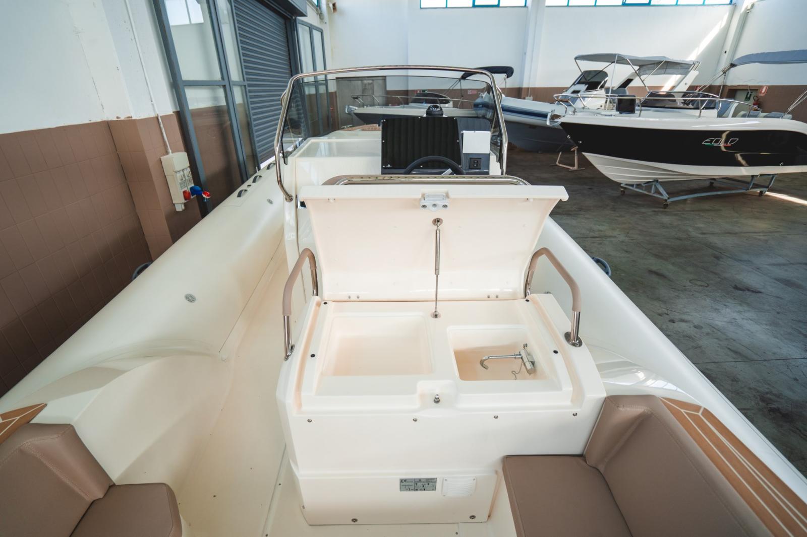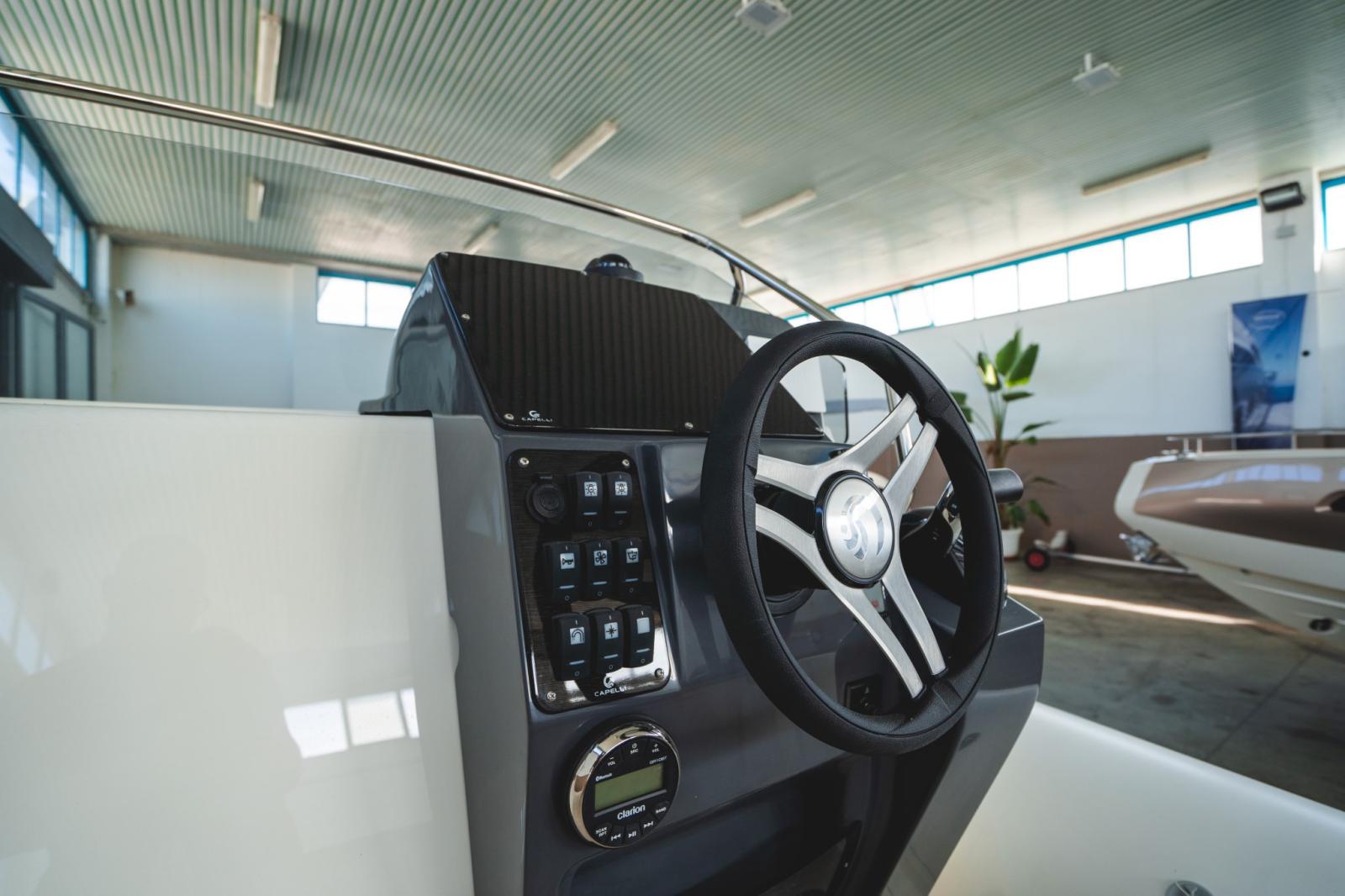 Bateau idéal pour ceux qui ne veulent rien abandonner en mer, du confort aux lignes élégantes et en même temps sportives, à la navigation fluide et sûre, bénéficiant d’un excellent design et d’un moteur hors-bord de dernière technologie, qui vous garantira des performances et une fiabilité uniques au plus haut niveau.