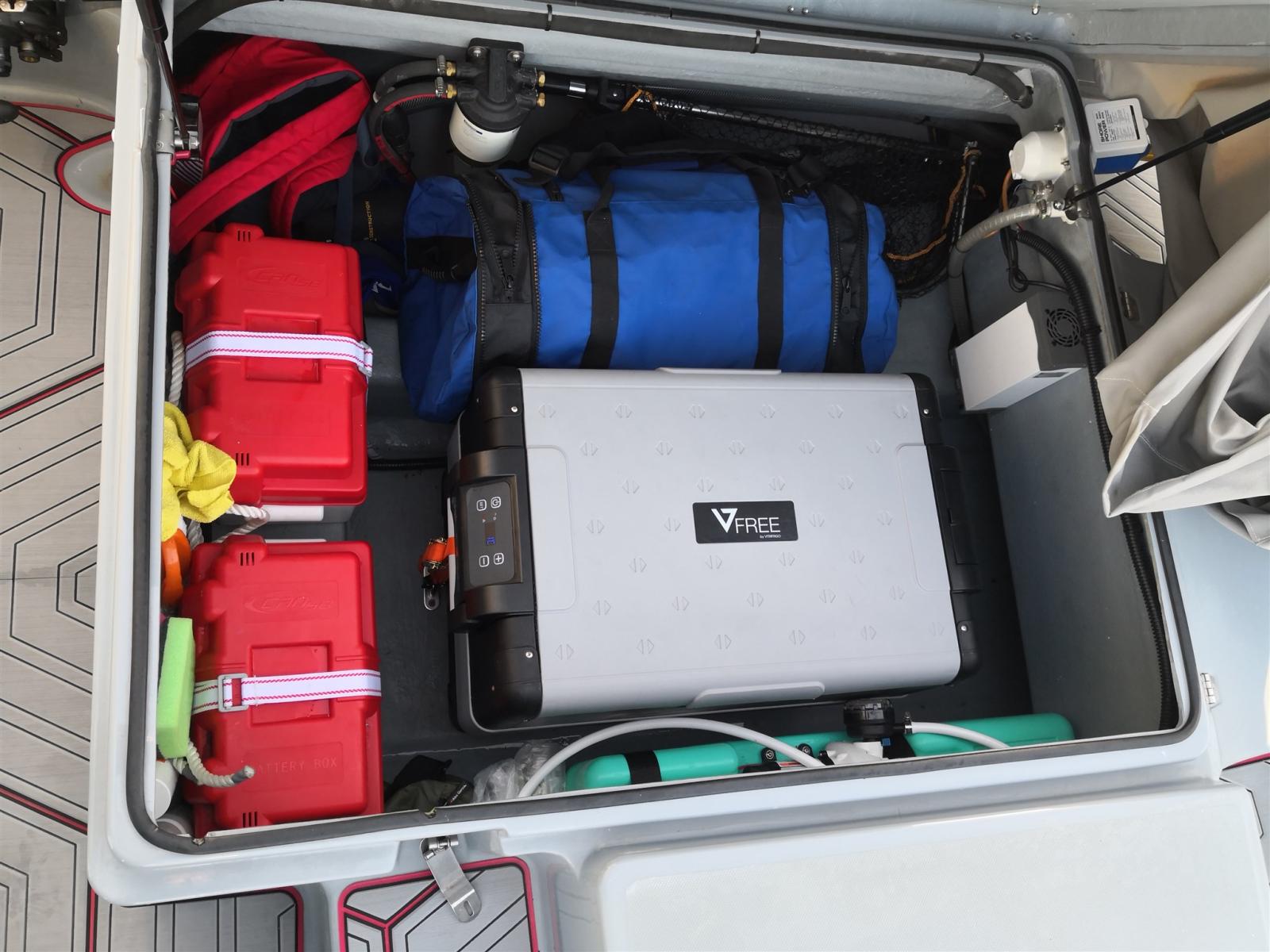 SeaDek, VHF fixe, Pompe de cale automatique, Coussins complets (non partiellement exposés), Chargeur de quai, Lumières de courtoisie LED, Double batterie, Déviateur, Couvertures partielles, Plates-formes Poupe, GARMIN EchoMap 62CV avec transducteur GT51-M 12 PIN, Système stéréo avec panneau avant Bluetooth avec boîtes nautiques N°4, Panneau utilitaire, Boussole, Échelle de bain, Feux de rue et d’ancrage, Filtre décanteur, Feuille de carrosserie de calandre moteur, Direction hydraulique SeaStar, Système de douche avec réservoir d’eau rigide, Nez d’étrave en acier inoxydable, Terrasse arrière avec dossier rabattable, Terrasse avant, chambres à air N°6.
