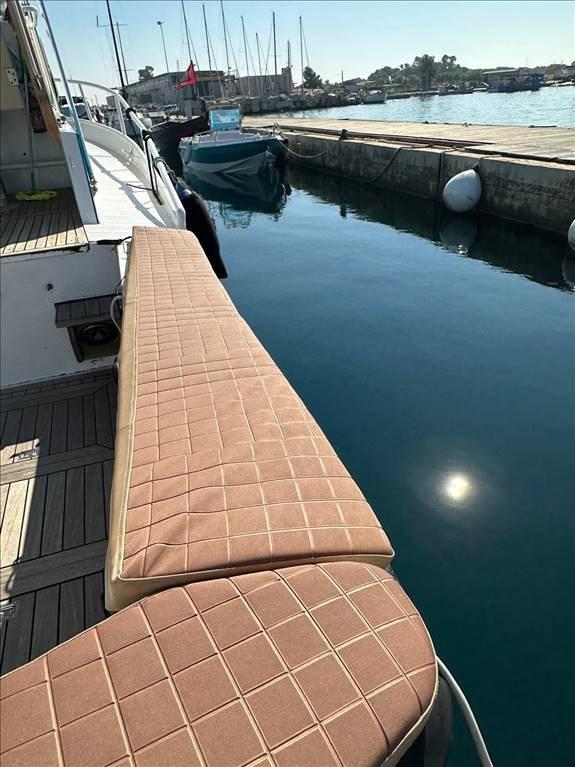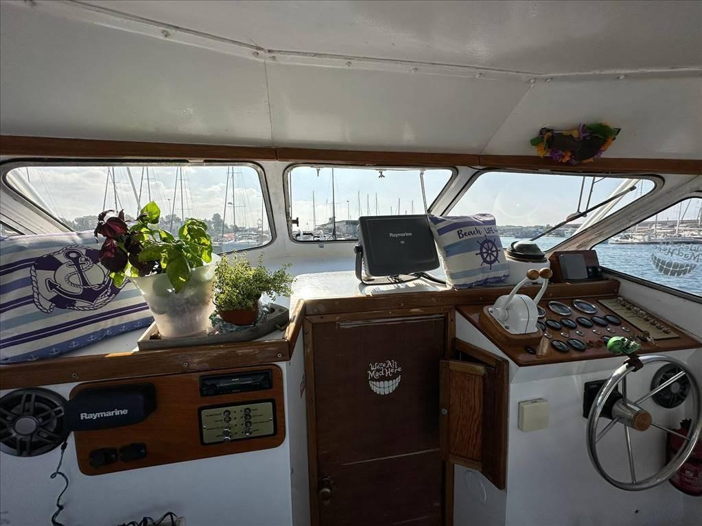 Tableau de bord en teck, instrumentation 2020. Des intérieurs complets et originaux, une cabine avant et 4 lits dans un coin convertible. Cuisine, four, réfrigérateur. Moteurs atterris et reconditionnés 2015, coupons périodiques. Emballage 3M Juillet 2022.