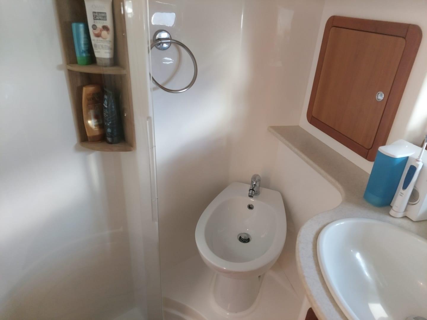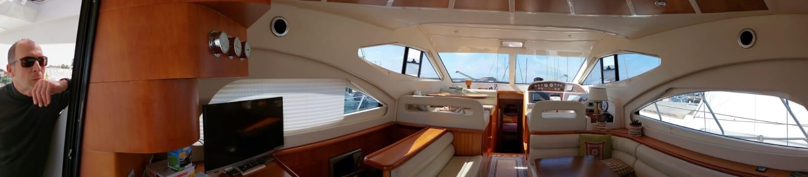 Eau sous pression, Système de vidange, Douche de cockpit, Double barre à roue, Flaps hydrauliques, Extincteur(s) fixe(s), Indicateurs de flaps, Éclairage de courtoisie, Passerelle, Plateforme arrière, Pompe de cale automatique, Pompe de cale manuelle, Porte latérale, Cockpit en teck, Prise de quai, Répétiteur électronique, Rollbar, Guindeau électrique, Echelle de bain, table de cockpit, Corne, Winch électrique arrière, Winch électrique avant.