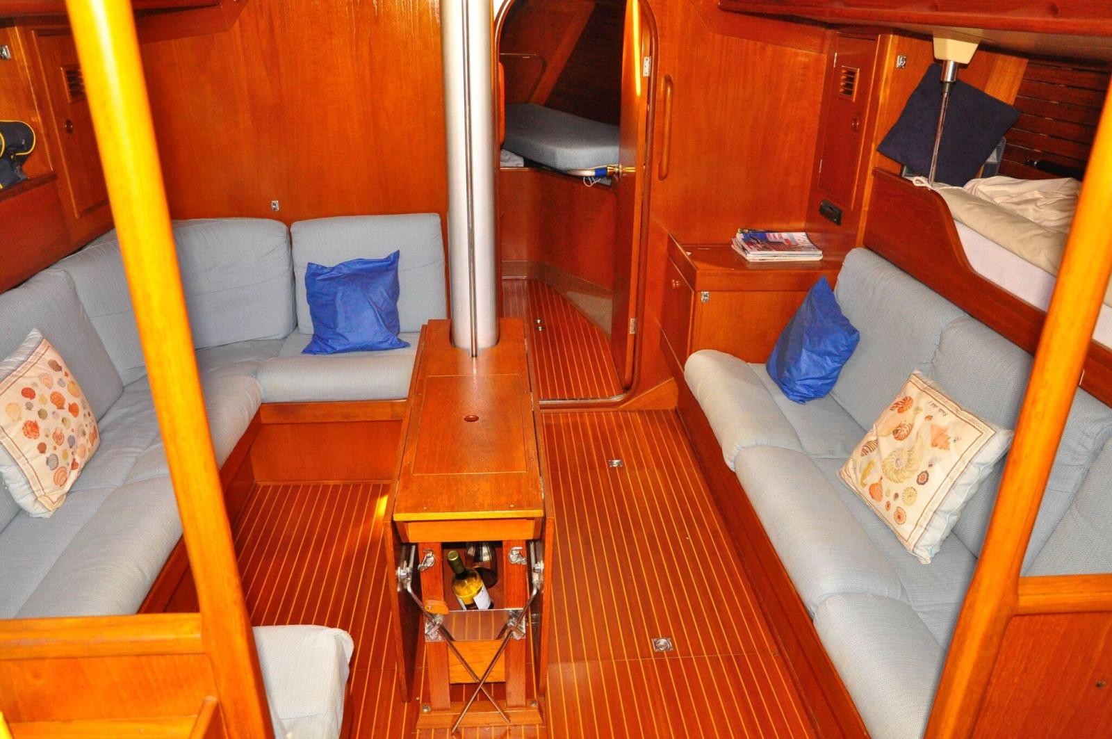 Canapé central et armoires suspendues des deux côtés de la cabine.