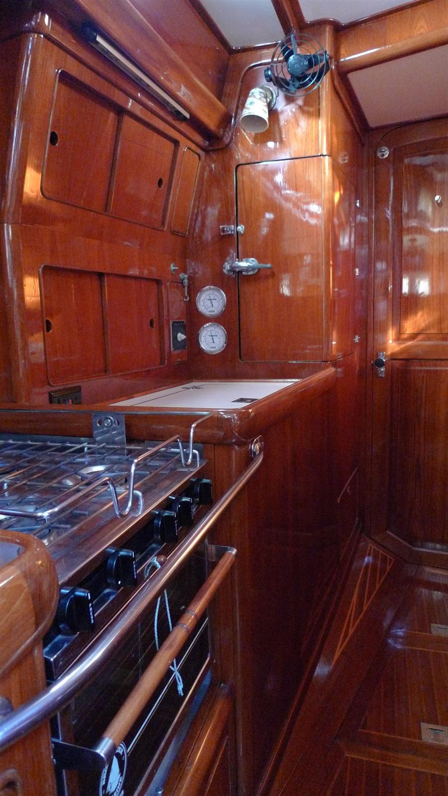 Eau sous pression, Passavant en teck, Panneau solaire, Passerelle, Cockpit en teck, Prise de quai, Guindeau électrique, table de cockpit, Winch électrique arrière, Winch électrique avant, Windex.