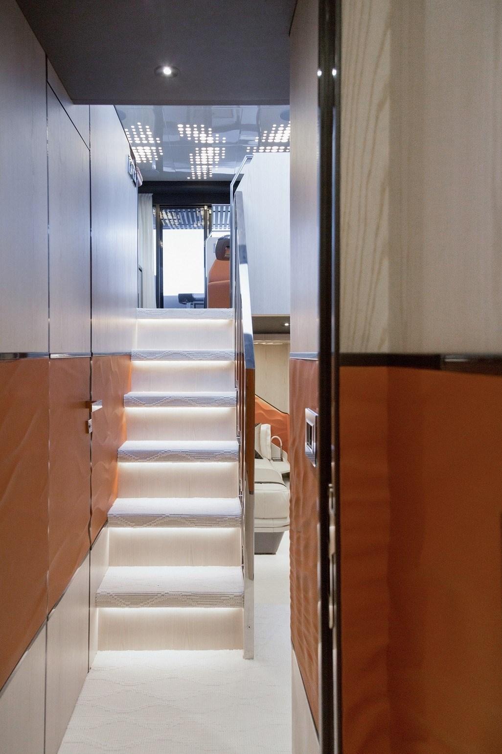 Sous le pont, le luxe et l’élégance font des cabines une exclusivité inégalée pour des yachts de cette taille. L’espace nuit comprend une grande cabine principale meublée avec raffinement et soin, équipée d’une salle de bain privative, une deuxième cabine double avec salle de bain, une cabine twin et une dernière cabine pouvant être configurée en cuisine fonctionnelle.