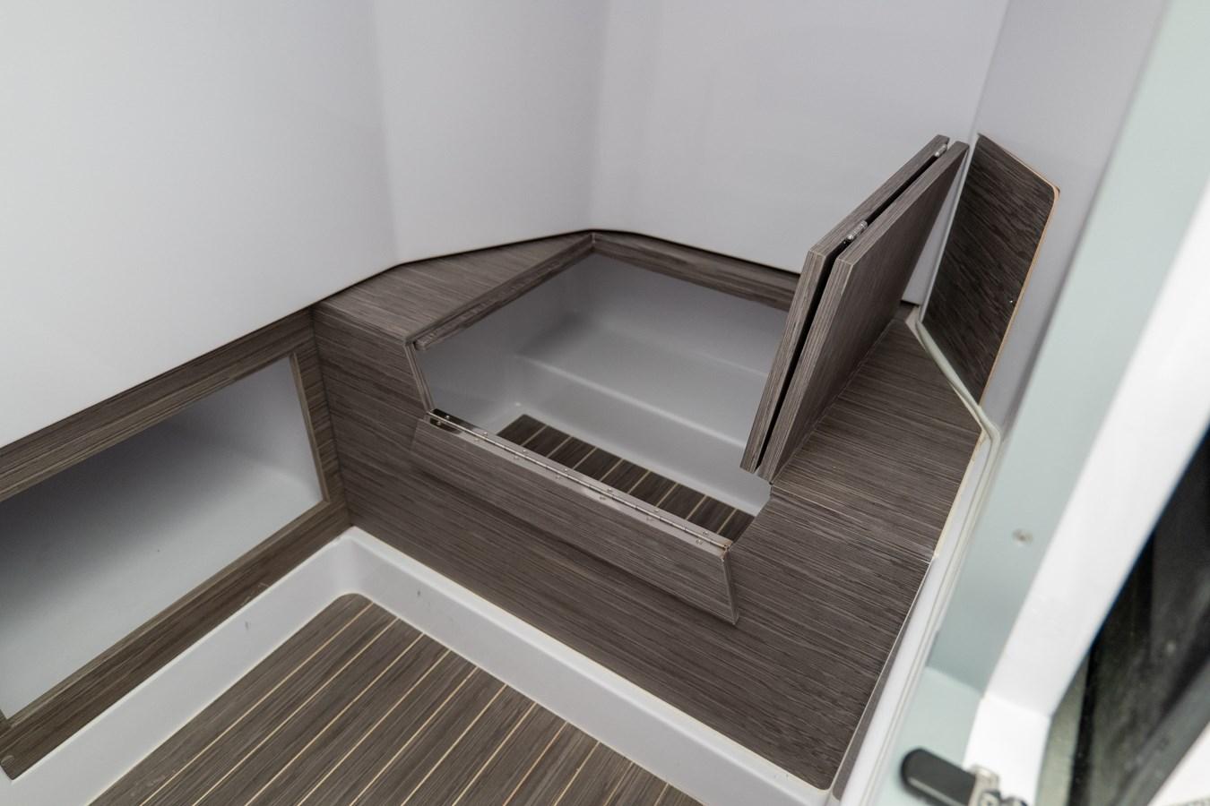 2 Hublot de console - Extracteur de gaz - Coussins de soleil à l’avant - Jauge de carburant - Feux de navigation - Meuble WC en chêne gris foncé - Siège conducteur avec dossier à rabat - Pompe de cale à commande automatique/manuelle - Compartiment de rangement - Coque Redan HIS - Coque blanche - Echelle d’escalade - Réservoir d’eau - Réservoir de carburant en polyéthylène réticulé - Jeu complet de mains courantes en acier inoxydable - Interrupteur de batterie - Sellerie extérieure standard - Poches de rangement - Timonerie Mécanique complète - Klaxon électrique