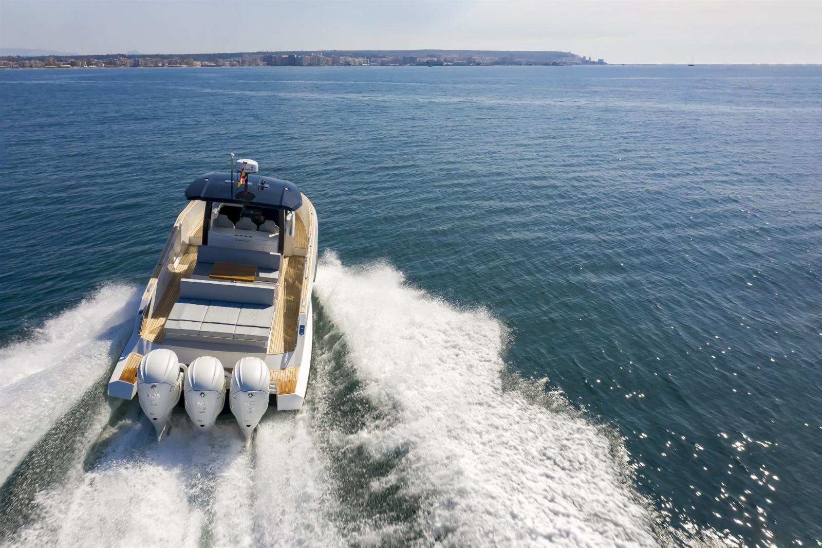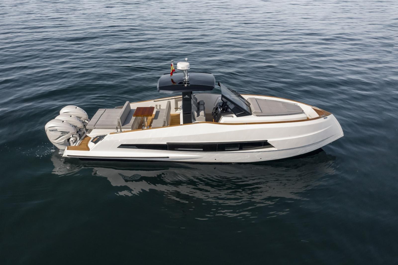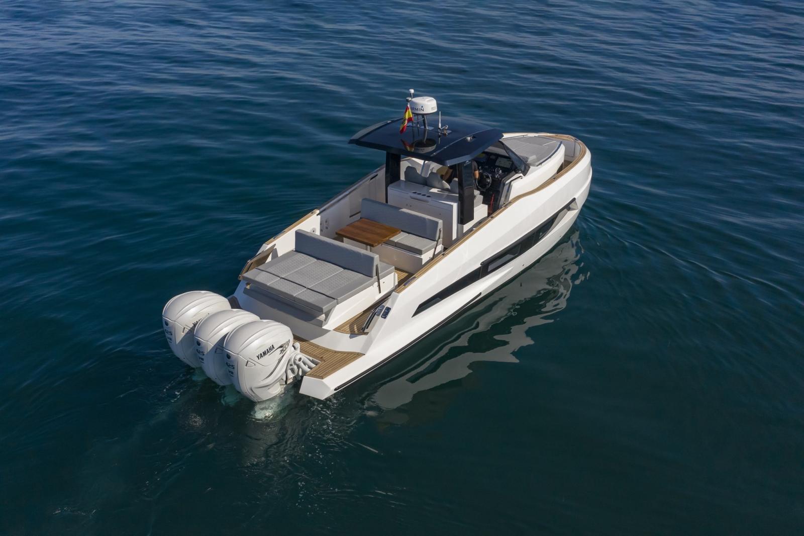 Le hors-bord Astondoa 377 Coupé se caractérise par un design épuré et aérodynamique, son étrave inversée donne de la substance, de la force et de la stabilité au bateau.