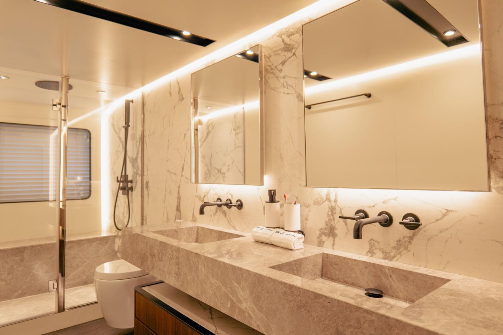 Système de gestion domotique avec écran 16" - Gradateur pour le salon, le cockpit arrière et les cabines - Générateurs 2 x 20,5 kW 50 Hz. - Système Glendenning (2) - Salon électrique et auvents de cabine du propriétaire.