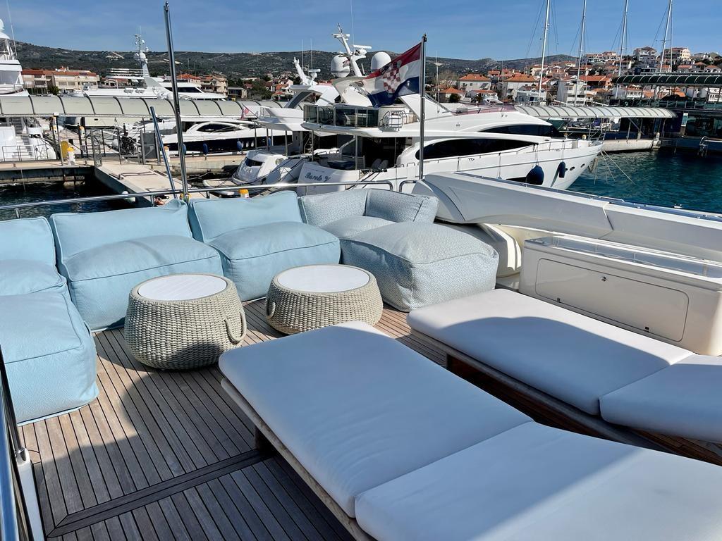 Plongez dans l’élégance somptueuse à bord du Ferretti 960 #16 'FAMILIA'. Ce yacht dispose d’un éventail de caractéristiques distinctives telles que des options d’éclairage personnalisées, des appareils Miele haut de gamme, ainsi qu’un système de divertissement de pointe mis en valeur par de nombreux téléviseurs grand écran et des commandes NAVIOP. Tout cela témoigne du confort personnalisé que ce navire offre à son meilleur. Laissez-vous tenter par des éléments de design uniques tels que des parquets en bois franc, des tissus d’ameublement somptueux et une salle de bain principale exquise, évoquant une image de l’expression du luxe maritime profond qu’est vraiment « FAMILIA ».