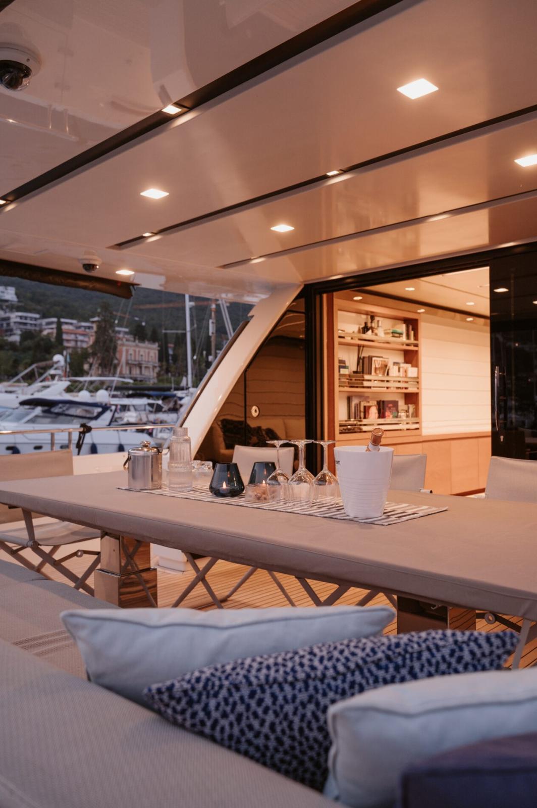 Station d’accueil sur le pont arrière (avec instrument de profondeur Raymarine pour l’arrière du yacht)