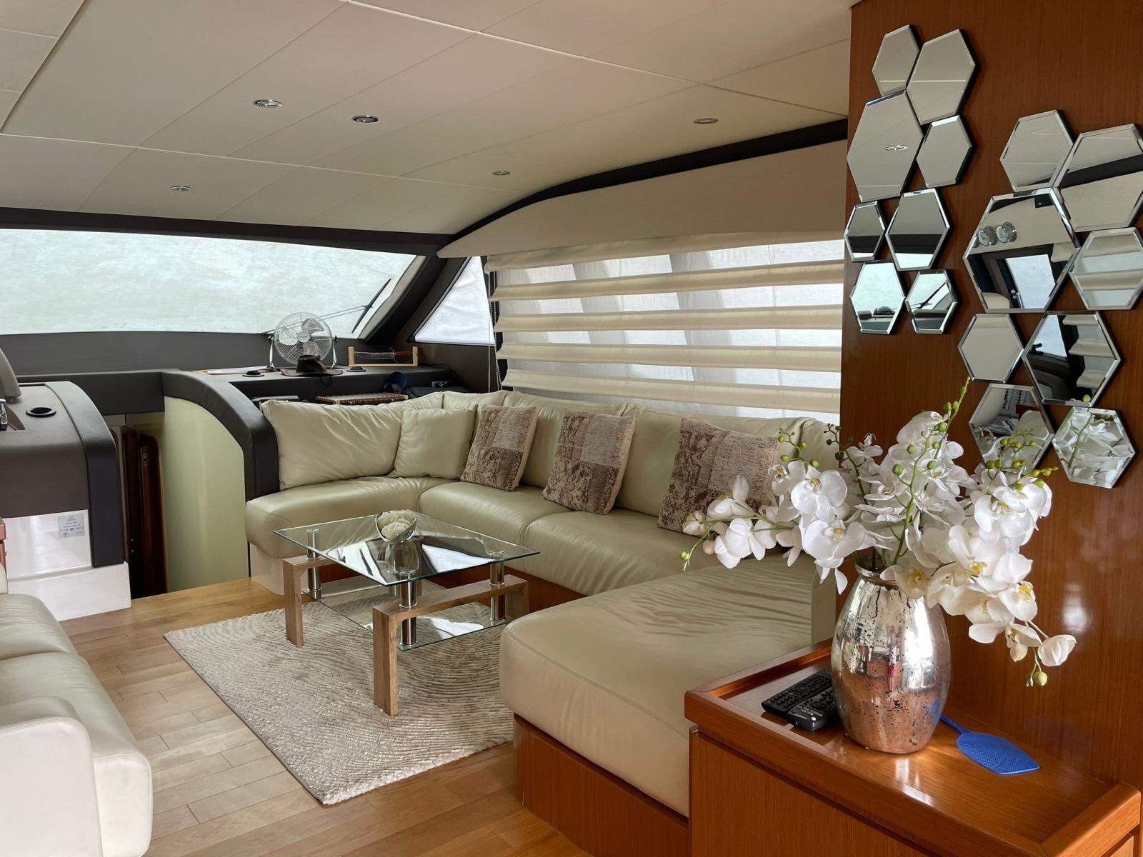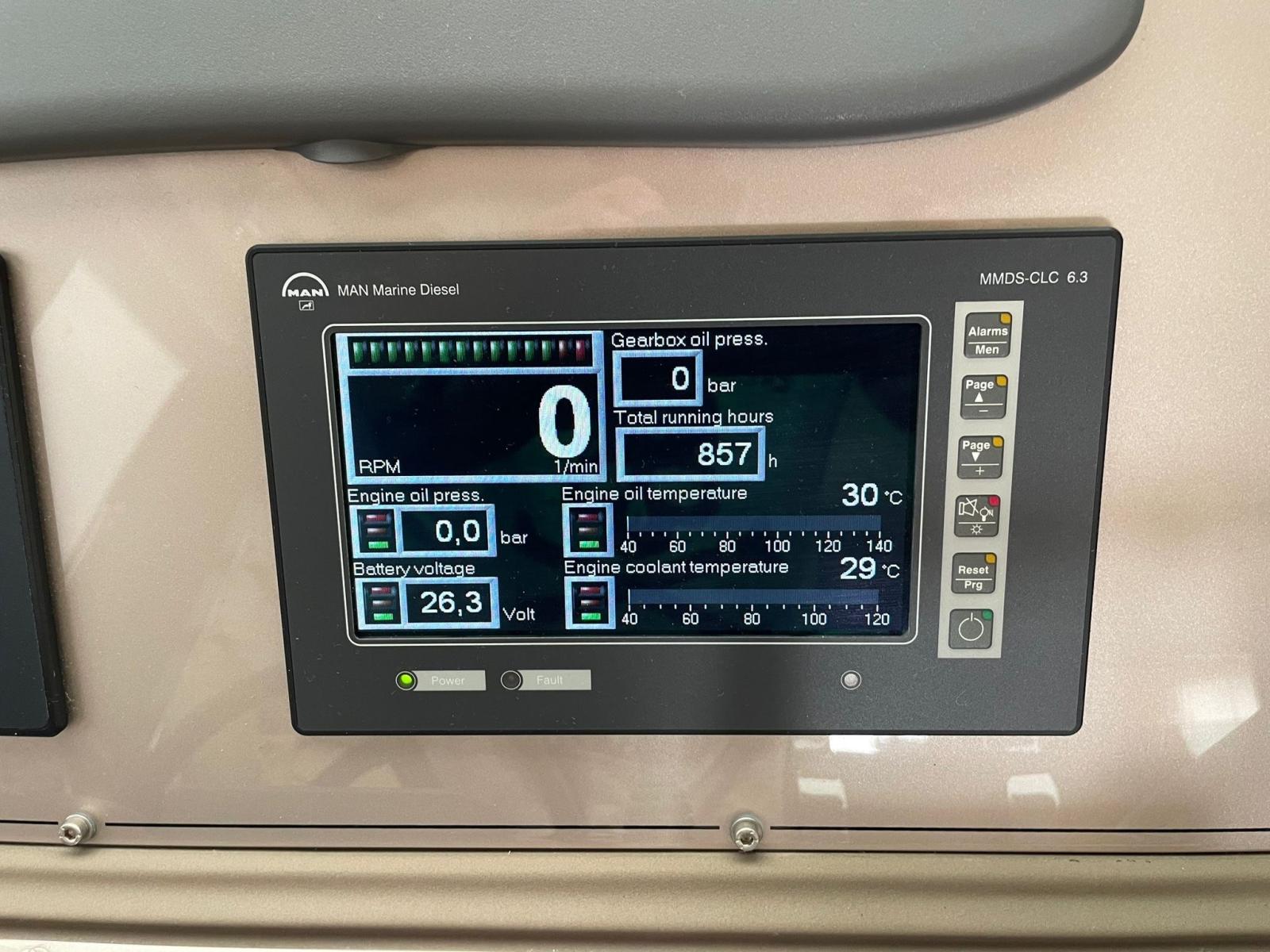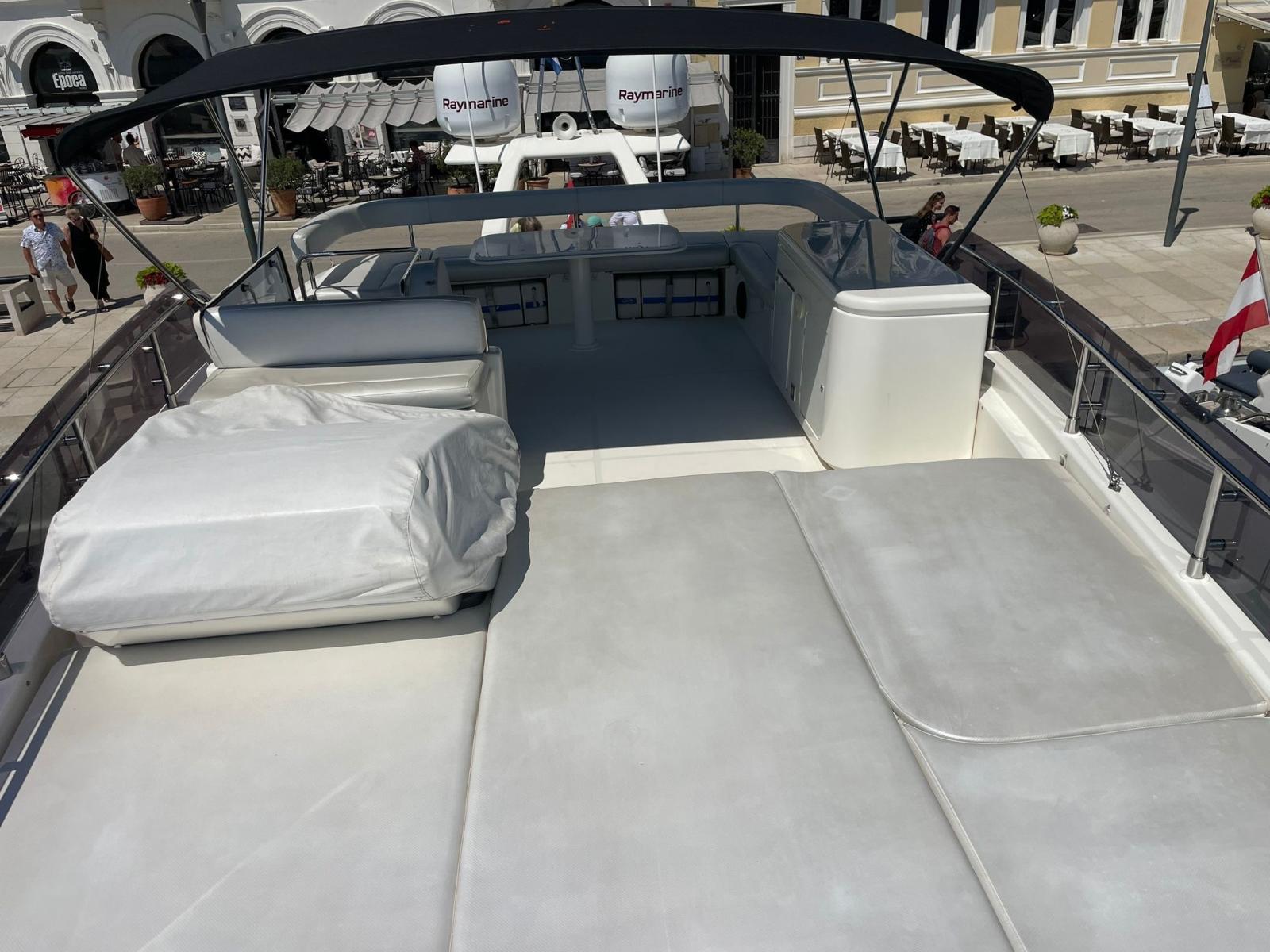 Alarme gaz, Alarme moteur, Alarme de pompe de cale, Eau sous pression, Douche de cockpit, Extincteur(s) fixe(s), Indicateurs de flaps, Lavabo dans le cockpit, Jet-ski, Passerelle, Plateforme arrière, Pompe de cale automatique, Pompe de cale manuelle, Cockpit en teck, Prise de quai, Onduleur, Guindeau électrique, Echelle de bain, table de cockpit, Corne, Winch électrique avant.