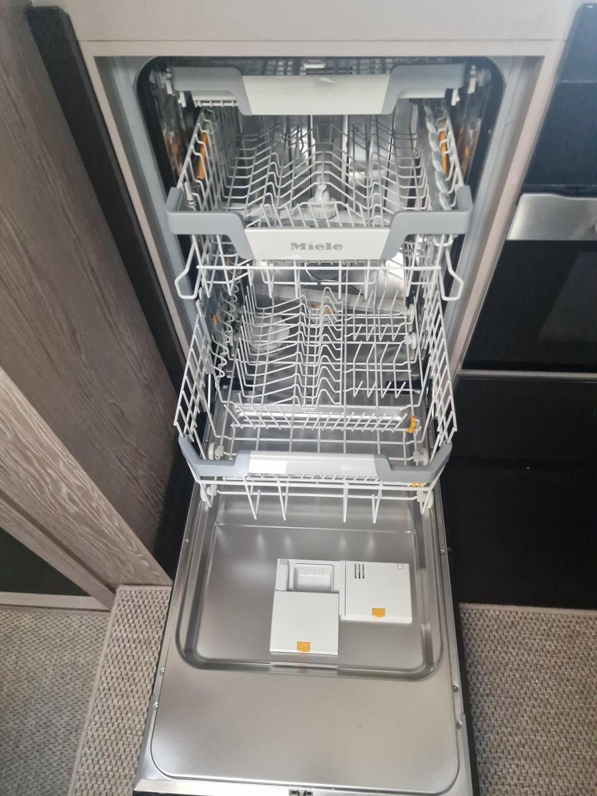 Four (Miele), Réfrigérateur extérieur, Machine à glaçons, Lave et sèche-linge (Hoover), Lave-vaisselle (Miele), Plaque vitrocéramique.