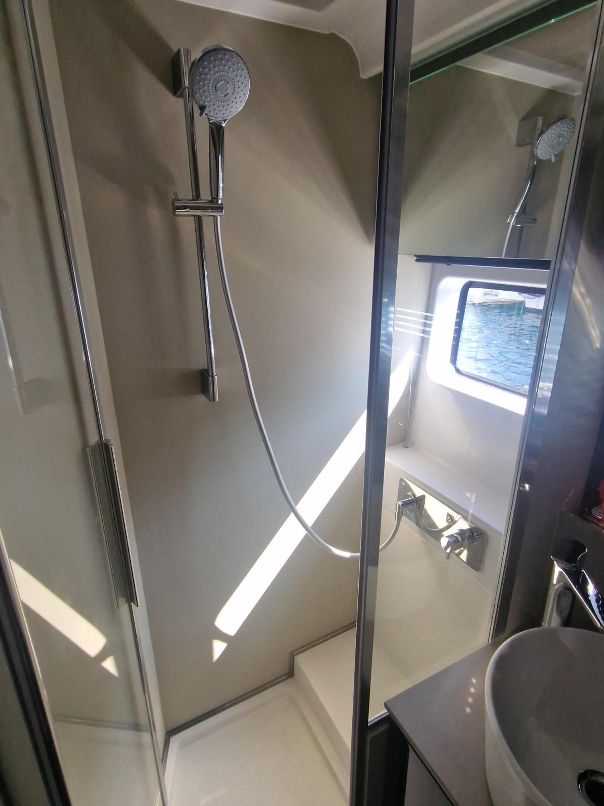 Douche de cockpit, Garage à annexe, Hard top, Passerelle, Plateforme arrière, Pompe de cale automatique, Pompe de cale manuelle, Cockpit en teck, Prise de quai, Echelle de bain, table de cockpit.
