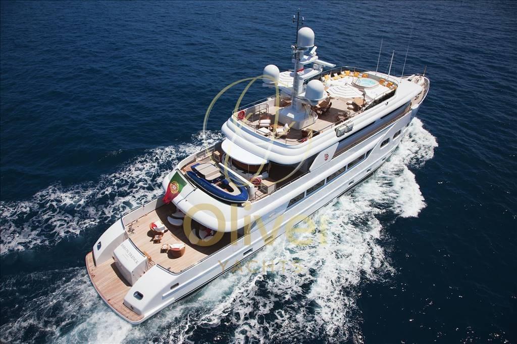 Après le carénage intensif auquel le Baron Trenk a été soumis, il peut être défini comme un yacht pratiquement neuf. Les interventions ont concerné toutes les pièces du bateau, du W6 aux moteurs, au remplacement du teck sur tous les ponts, jusqu’à la peinture complète de la coque et de la superstructure. Le BARON TRENCK a été construit par Eurocraft avec une coque brise-glace pour explorer le monde. Le BARON TRENCK est incroyablement stable au mouillage et est également équipé de stabilisateurs à vitesse nulle. Ce yacht d’exploration est fait sur mesure pour les aventures en haute mer, des tropiques aux pôles, où tout ce que vous avez à faire est de vous détendre et de profiter des vues spectaculaires pendant que vous naviguez. BARON TRENCK fait partie des 30 % les plus performants au monde en termes de tonnage. C’est l’un des 546 yachts à moteur de 40 à 45 mètres, et par rapport aux yachts à moteur de taille similaire, son volume est supérieur à la moyenne de 109,46 GT.