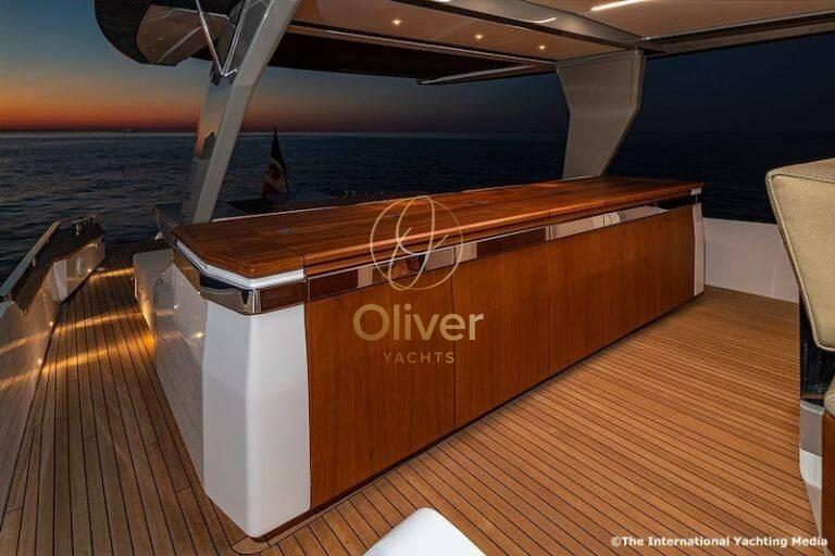 La première, fondamentale, concerne l’utilisation des nanotechnologies dans la formulation des résines grâce à un procédé breveté qui permet d’obtenir des résultats très améliorés dans la structure, qui est plus rigide et plus légère, réduisant considérablement les vibrations et la propagation du son. L’utilisation de moteurs Volvo IPS rationalise les performances et réduit la consommation de carburant, améliorant ainsi l’efficacité globale.