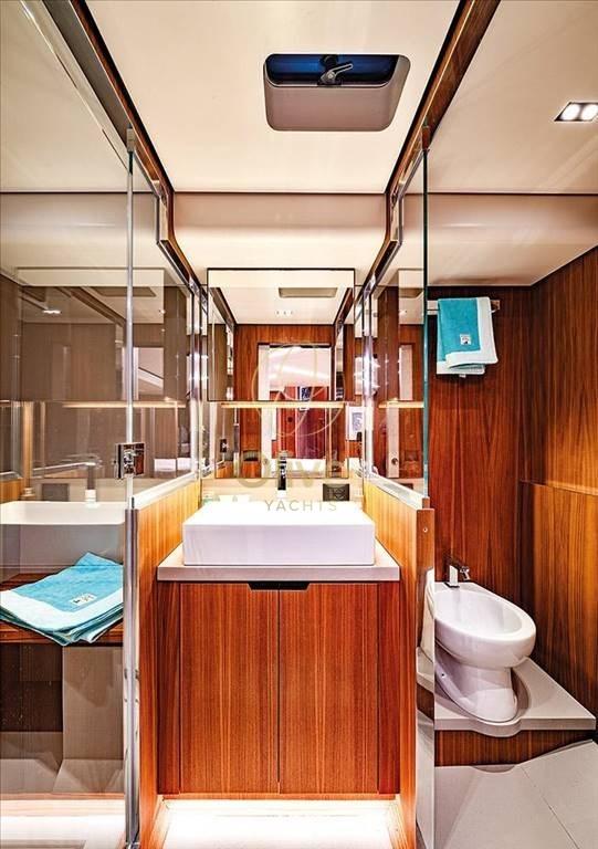 2 Alarme moteur, Alarme de pompe de cale, Eau sous pression, 10 Batteries, Phares fixes arrière, Flaps hydrauliques, Garage à annexe, Éolienne, Ber, Éclairage de courtoisie, Passerelle (di collegamento con la banchina in acciaio inox e teak), Plateforme arrière (laterale fissa di poppa in composito VTR), Porte latérale, Prise de quai, Onduleur, Echelle de bain, table de cockpit, Annexe, Corne.