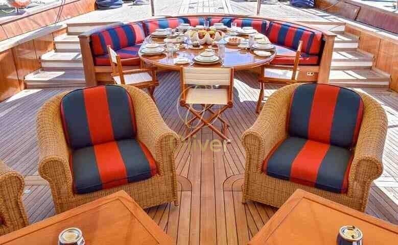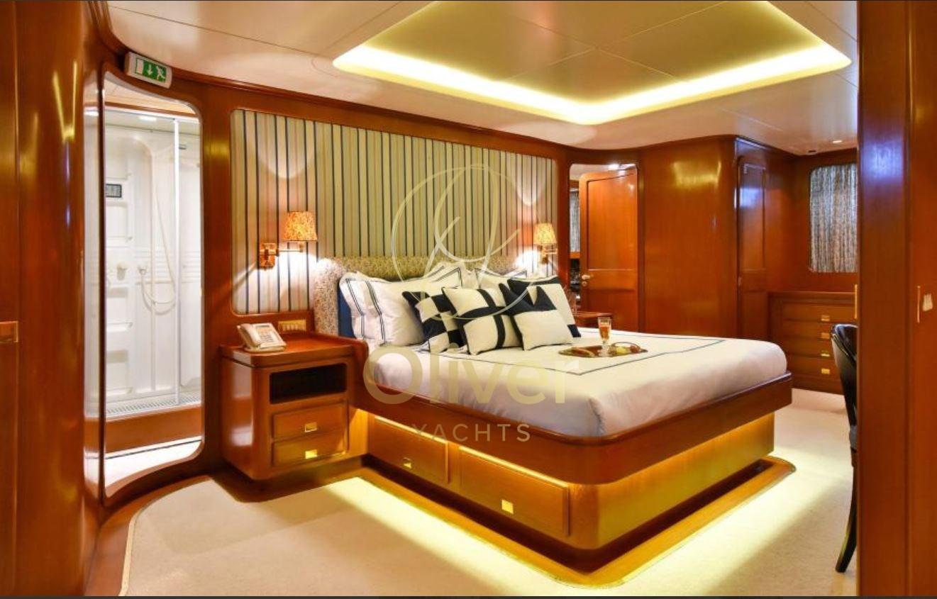 Les cabines invités comprennent une cabine principale avec un lit double king size, une cabine VIP avec un lit double et 2 cabines avec un lit double au sol. Quatre autres cabines sont disponibles pour un maximum de huit membres d’équipage.
