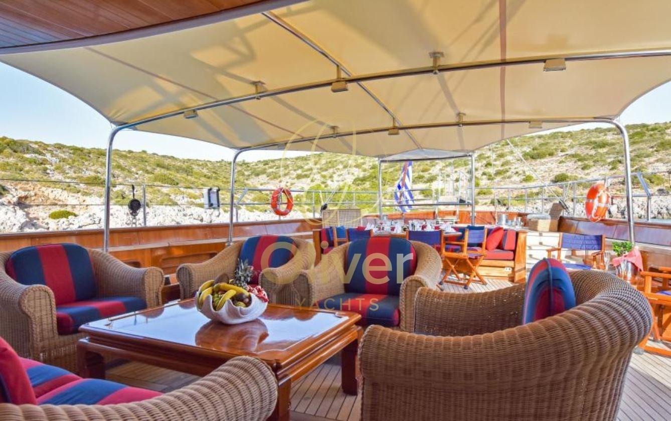 Avec un tirant d’eau de 7,02 mètres et un volume de 302 GT, c’est un yacht qui offre beaucoup d’espace pour les invités et l’équipage. En parlant d’équipage, ce superyacht peut accueillir 8 membres d’équipage.